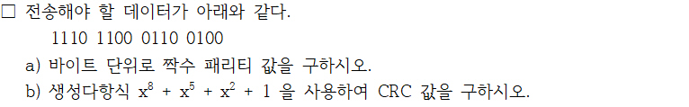 짝수 패리티의 경우 바이트 단위라고 했으니 8비트 씩 끊어서 짝수를 맞출 수 있는 값을 찾으시면 됩니다.