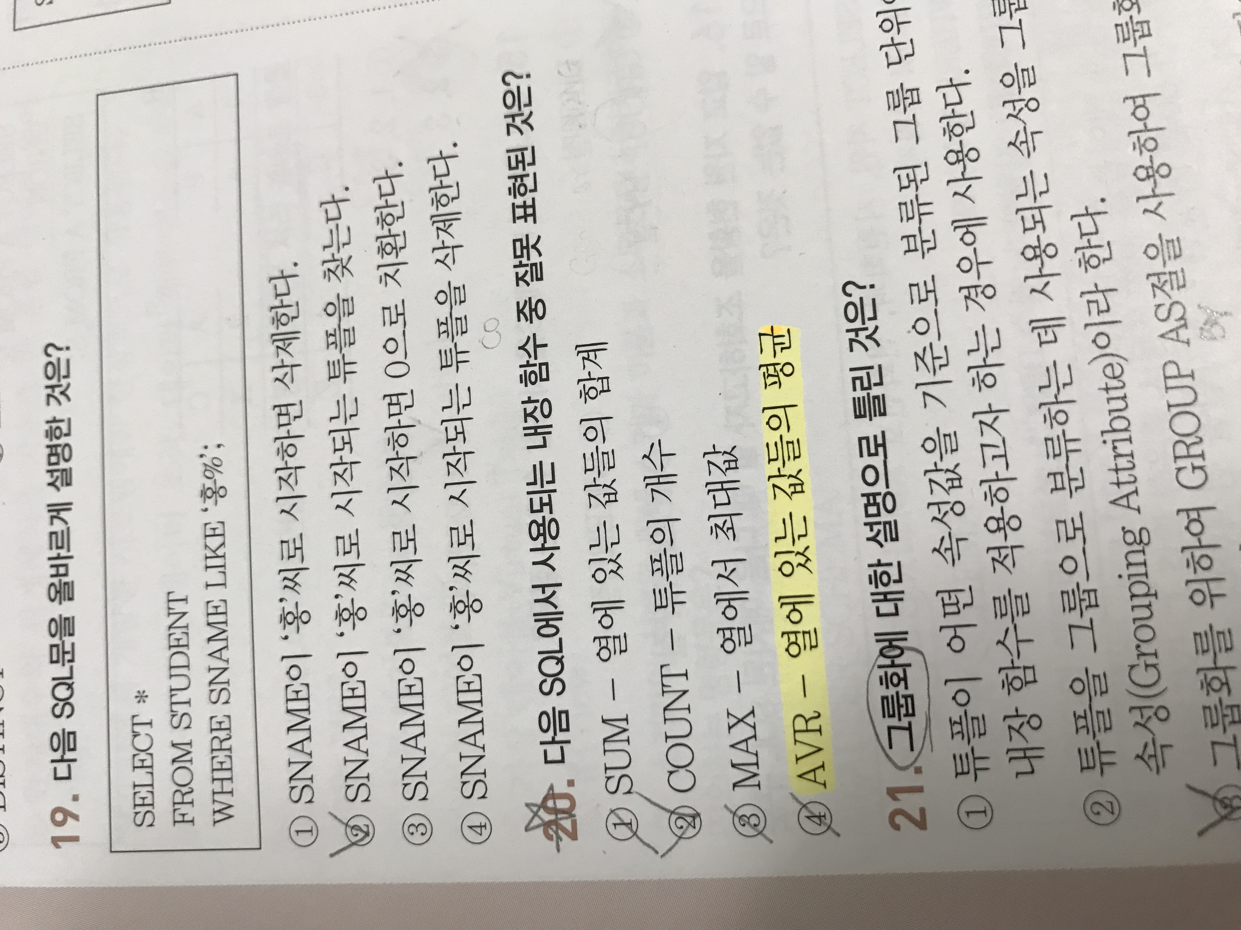 보기 4번은 평균을 구한다고 해놓고, AVG가 아닌 AVR이라고 적혀있죠.