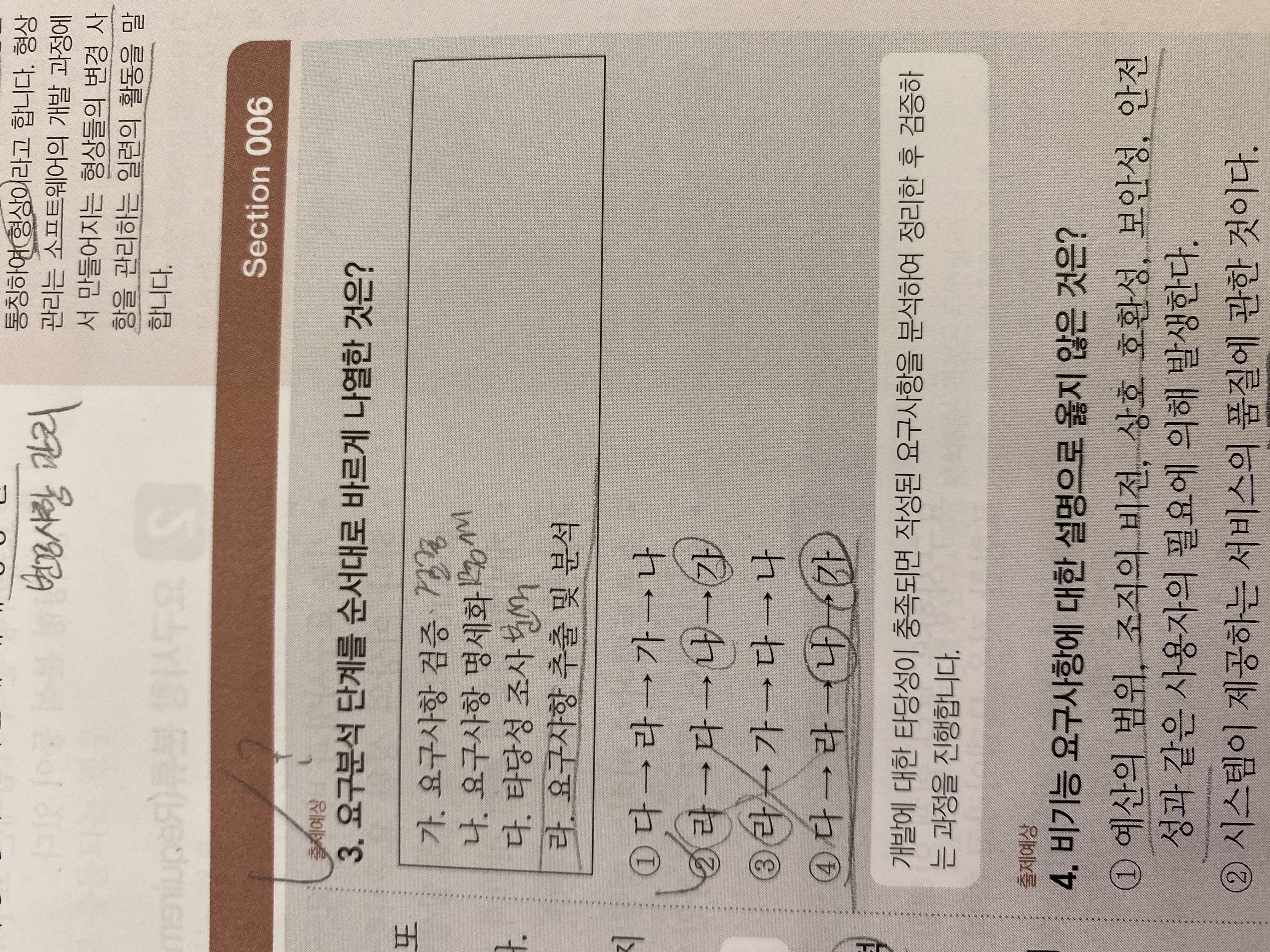 막상 정답에서는 두번째단계인. 요구사항 분석 단계와 연관된 “다”가 제일 앞에 있었습니다. 이거 어디서부터 문제인건가요?