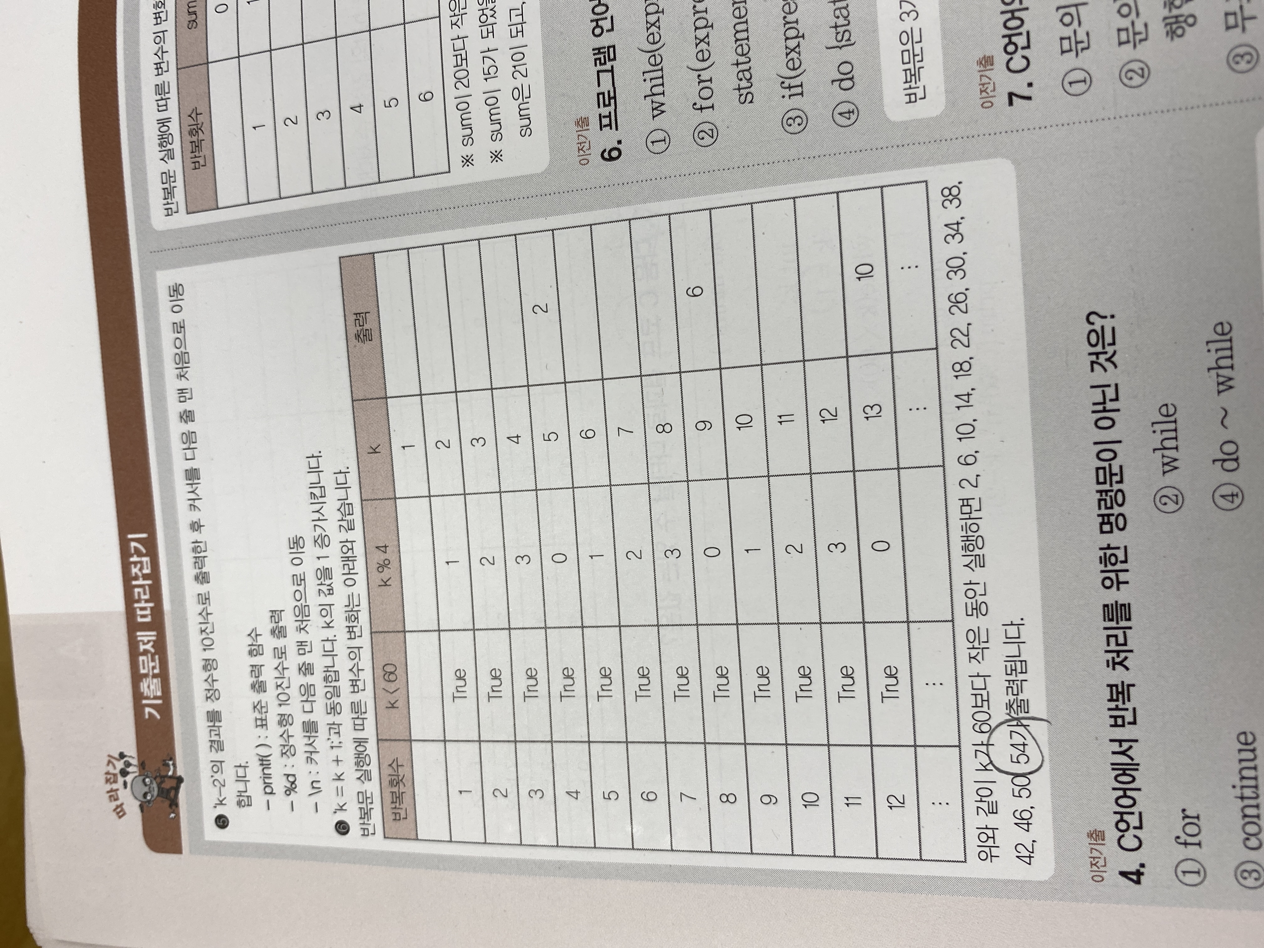 문제 3번 답이 왜 30인지 모르겠어요. 56-2해서 54아닌가요? 보기에도 k가 54가 출력이 된다고 나와있는데 왜 4번에 30이죠?