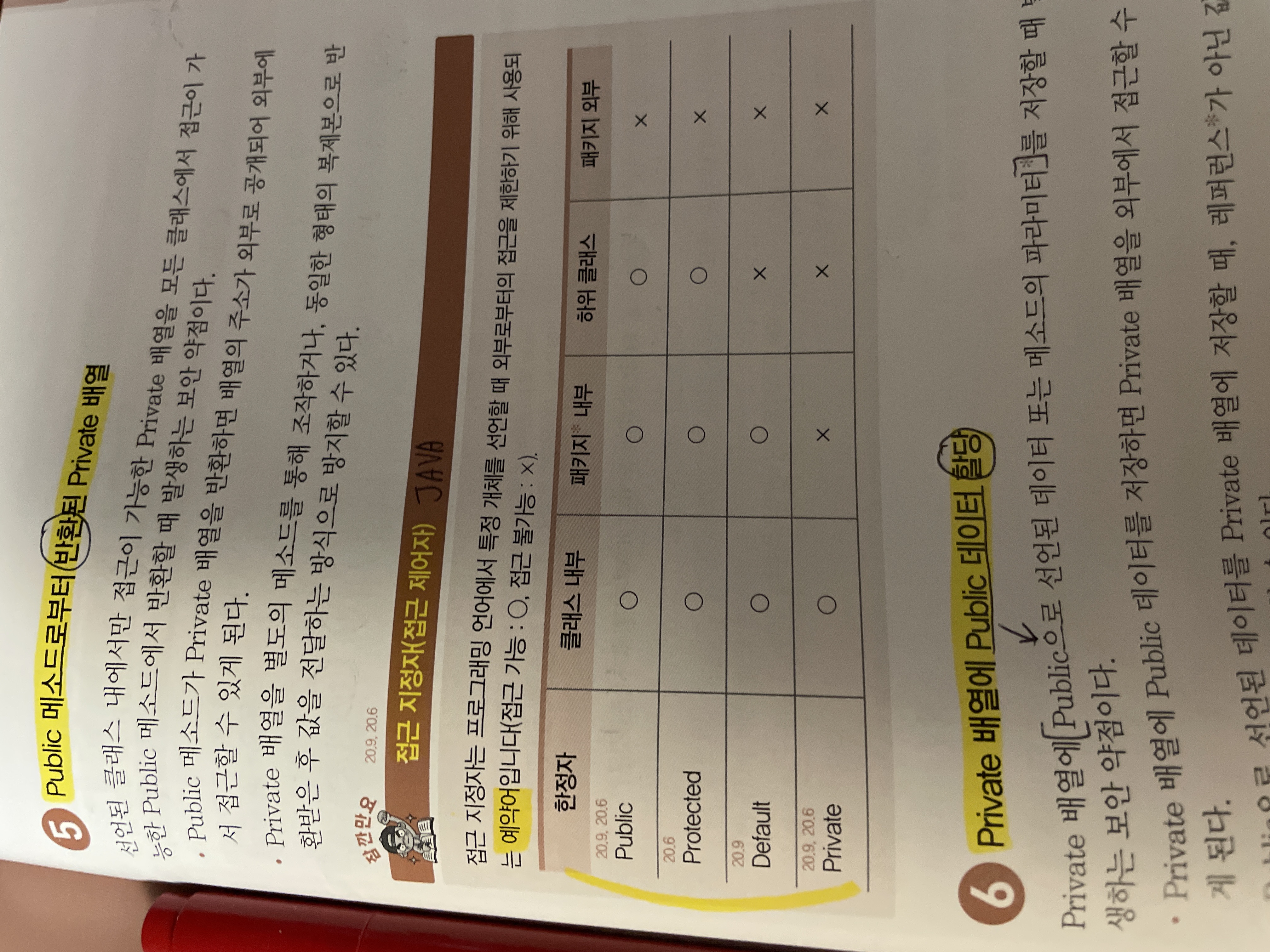 287쪽의 Public에 대한 접근 표시는 '패키지 외부' 또한 가능('O')으로 표시되어야 합니다.