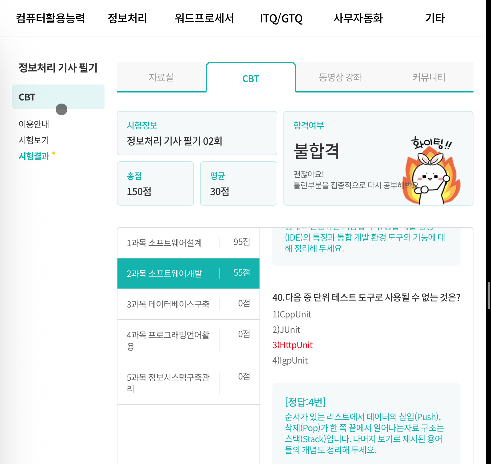 40번 정답은 3번(HttpUnit)이 맞을까요?