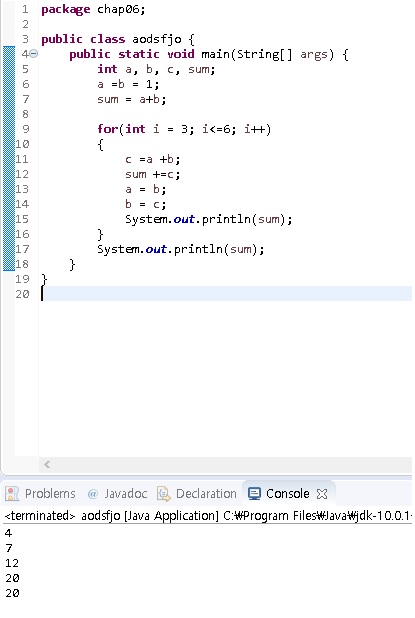 실제로 20이 나왔습니다. for문이 한번 돌때마다 sum을 출력했을 때에도