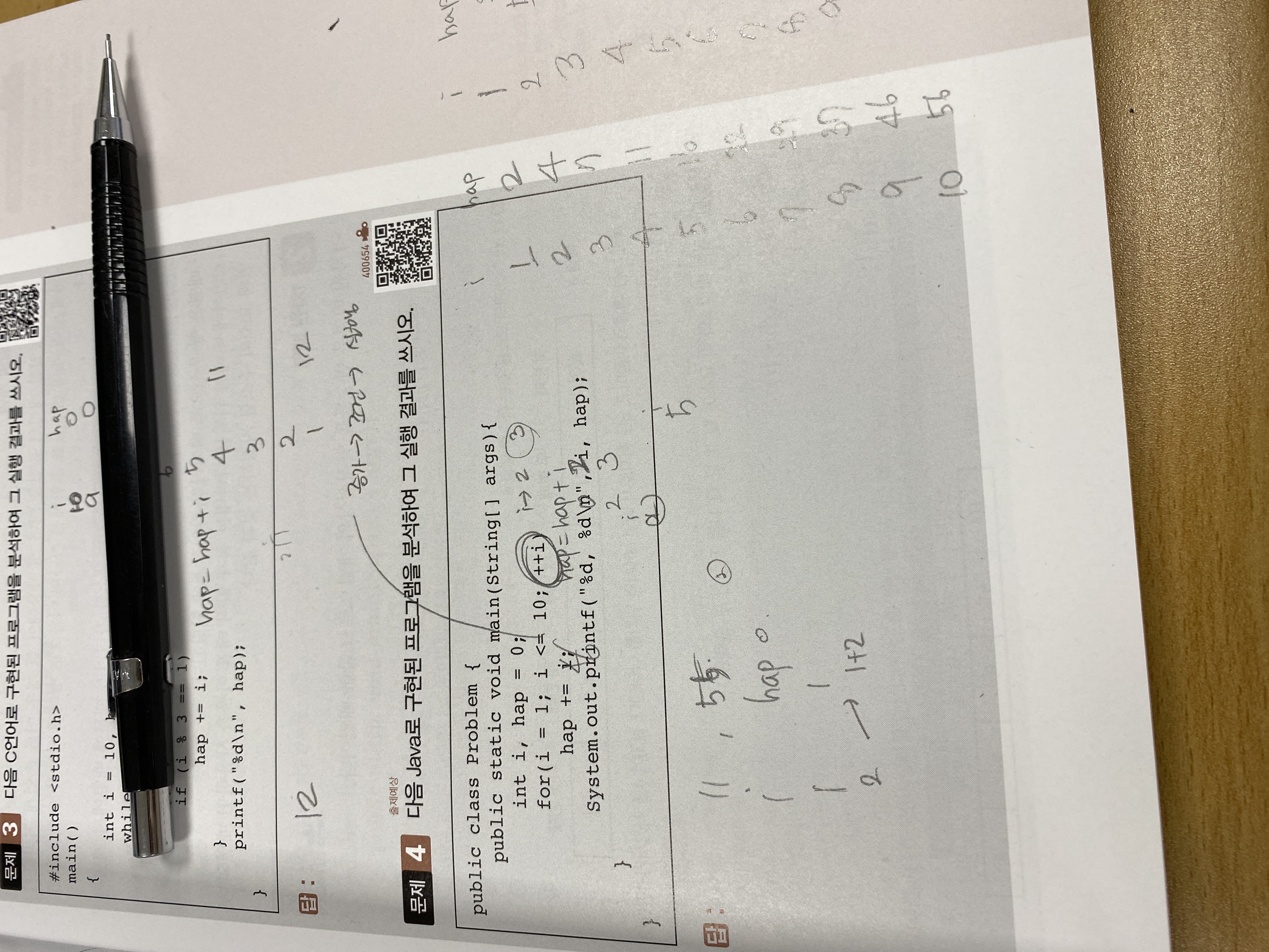 이 경우 i++의 후치연산은 hap+=i에 영향을 주지 않기 때문에 i가 1증가하고, 다음 증가한 값이 hap에 저장되게 됩니다.