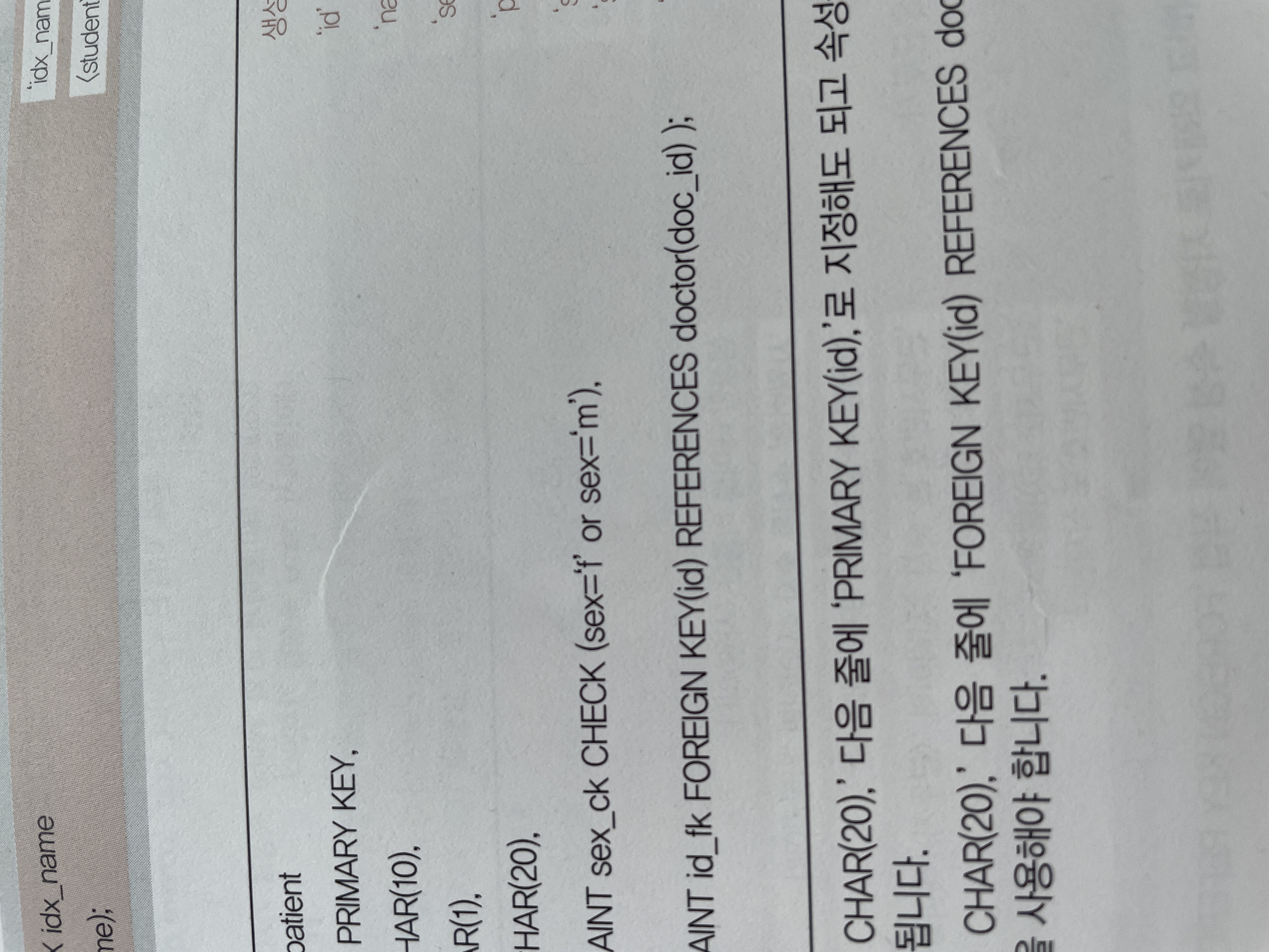 check(sex in ('f', 'm')) 으로 작성하셔야 합니다.