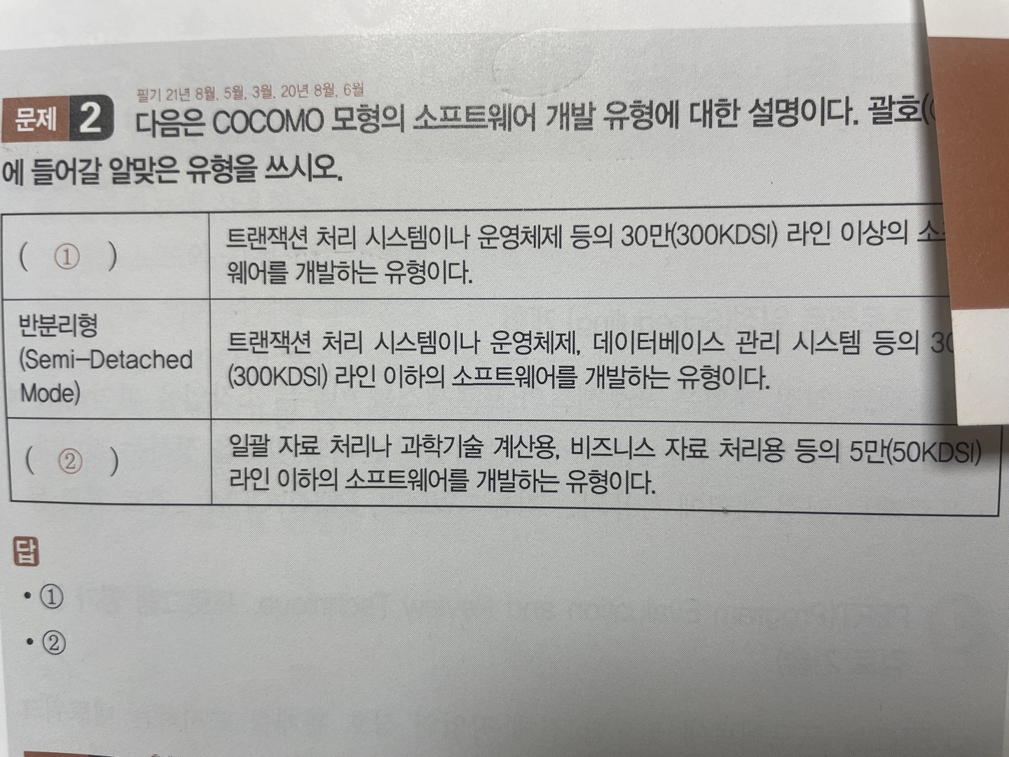 문제 2번에 제시해주신 표에 "반분리형(Semi-Detached)" 식으로 적혀있을 경우 내장형과 조직형을 답안에 작성할 때 한글만 써도되나요? 아님 "내장형(Embedded Mode), 조직형(Organic Mode)" 이런식으로 써야하나요?