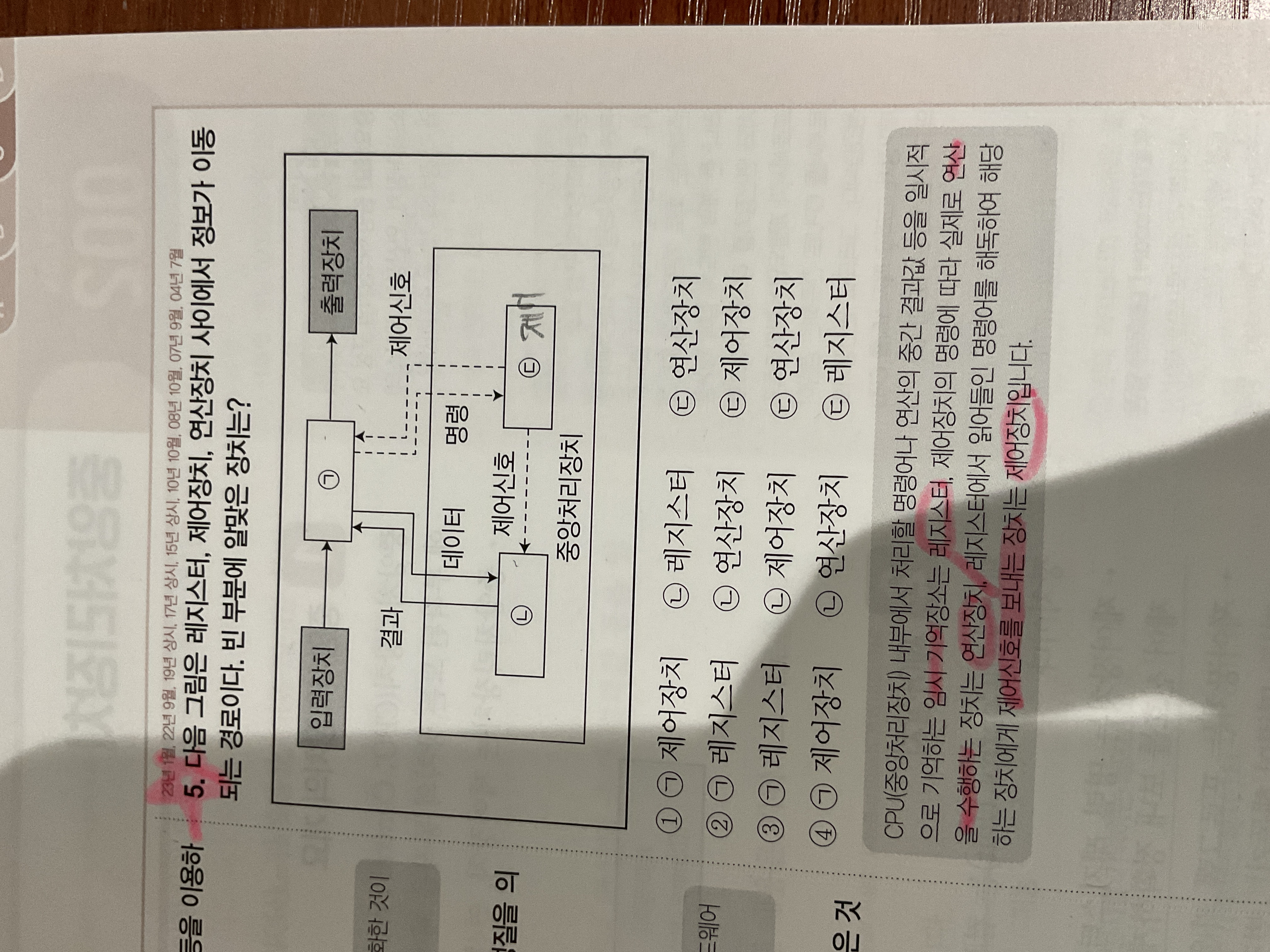 5번문제 그림에서 레지스터만 밖으로 나와 표현된것은