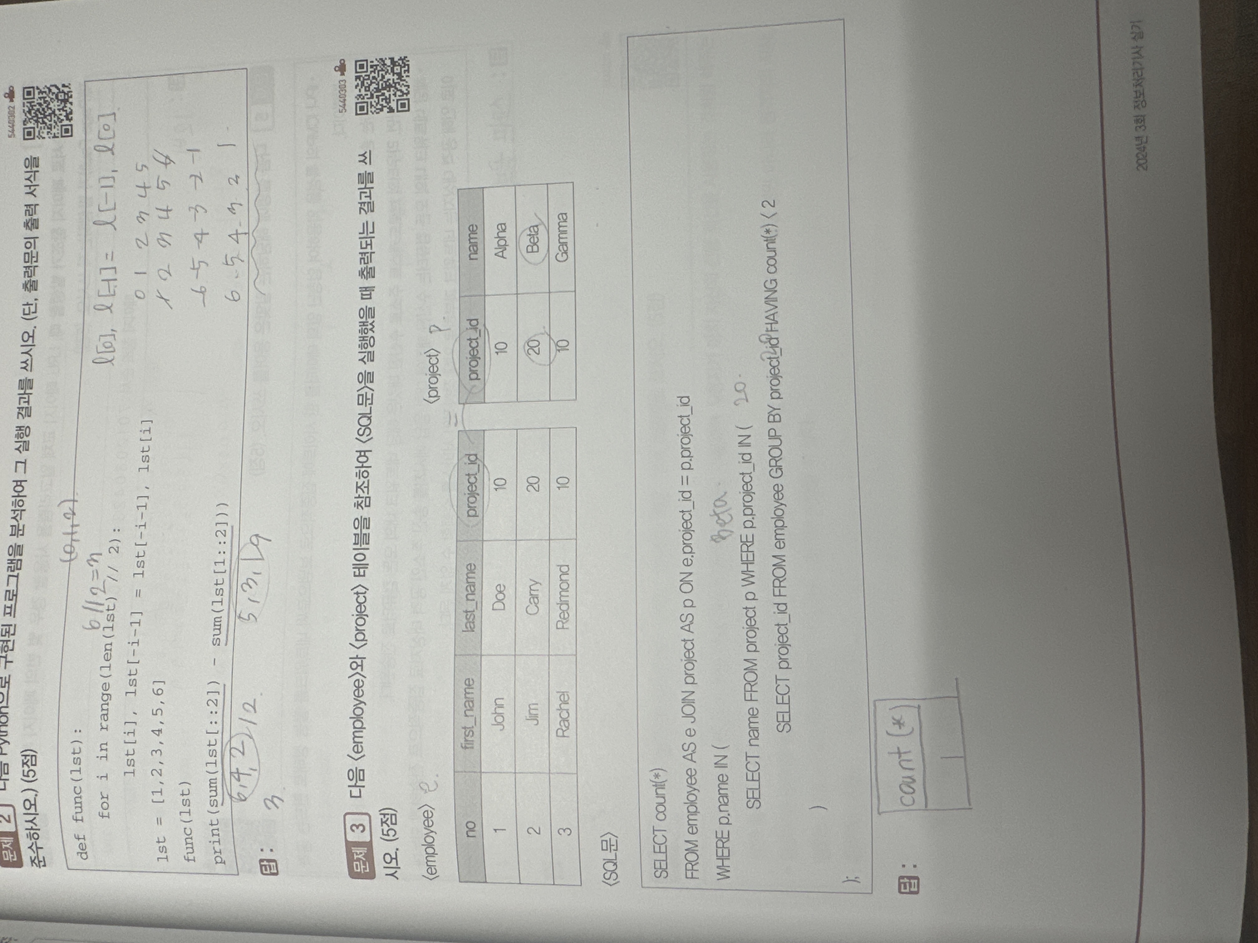 count를 하면 단일값만 출력되어서 1만 정답으로 처리되는지, 아니면 제가 적은 것 처럼 속성명을 적고 표로 적어도 되는지 궁금합니자