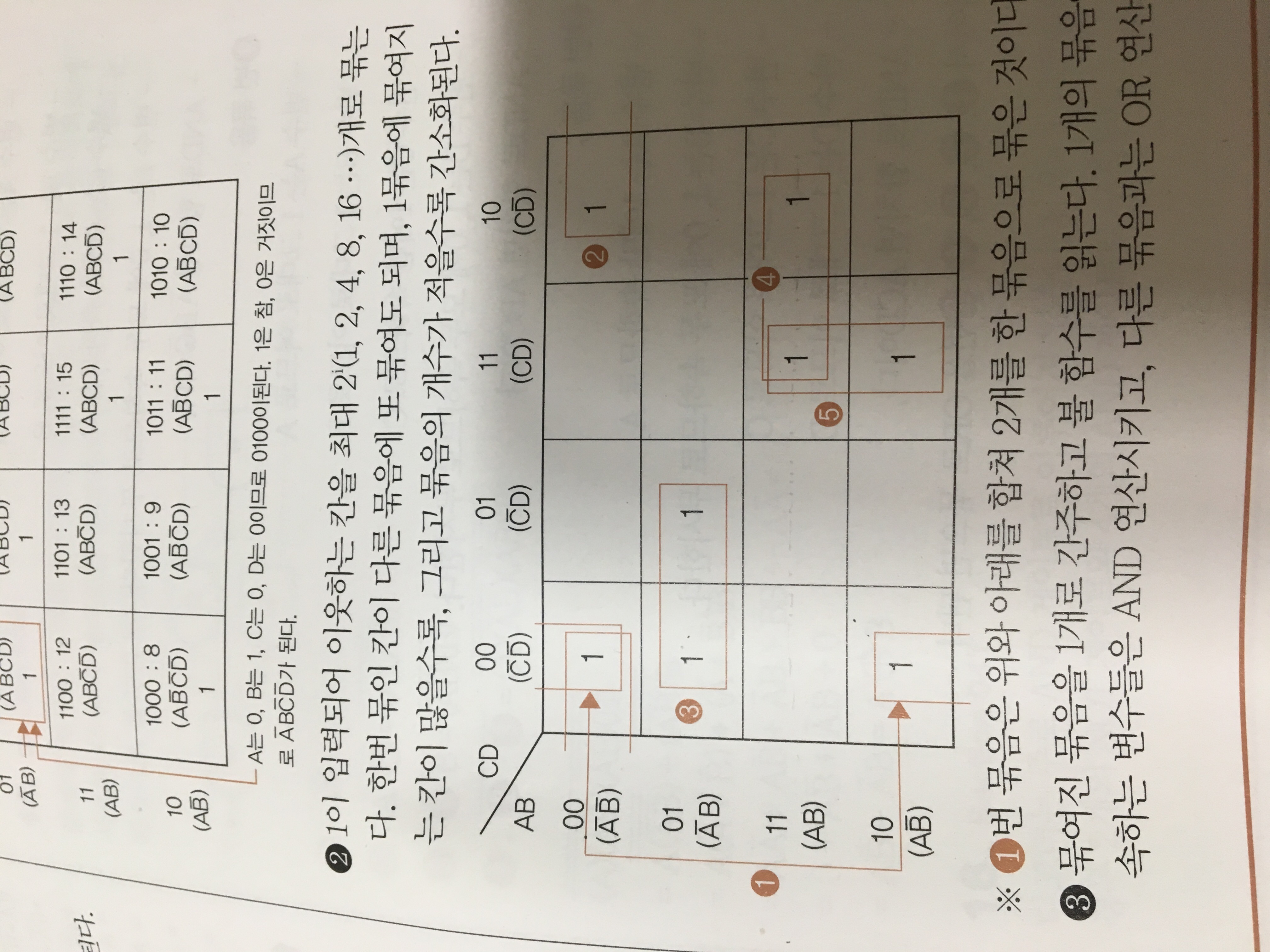 해당 카르노 맵의 경우, 묶음 칸 수를 최소한으로 줄이기 위하여 해당 경우와 같이 묶인 것입니다.