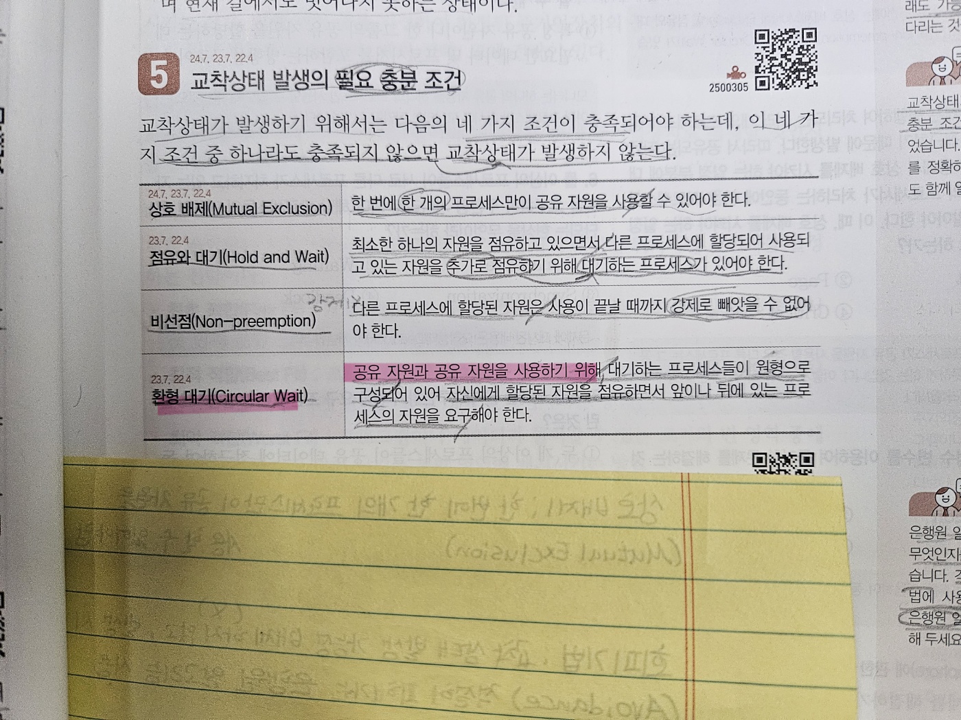 p.31 교착상태 발생 필요충분조건 중 환형 대기 부분에 공유 자원과 공유 자원을 사용하기 위해~ 부분에 오타가 있는 것을 발견하였습니다.