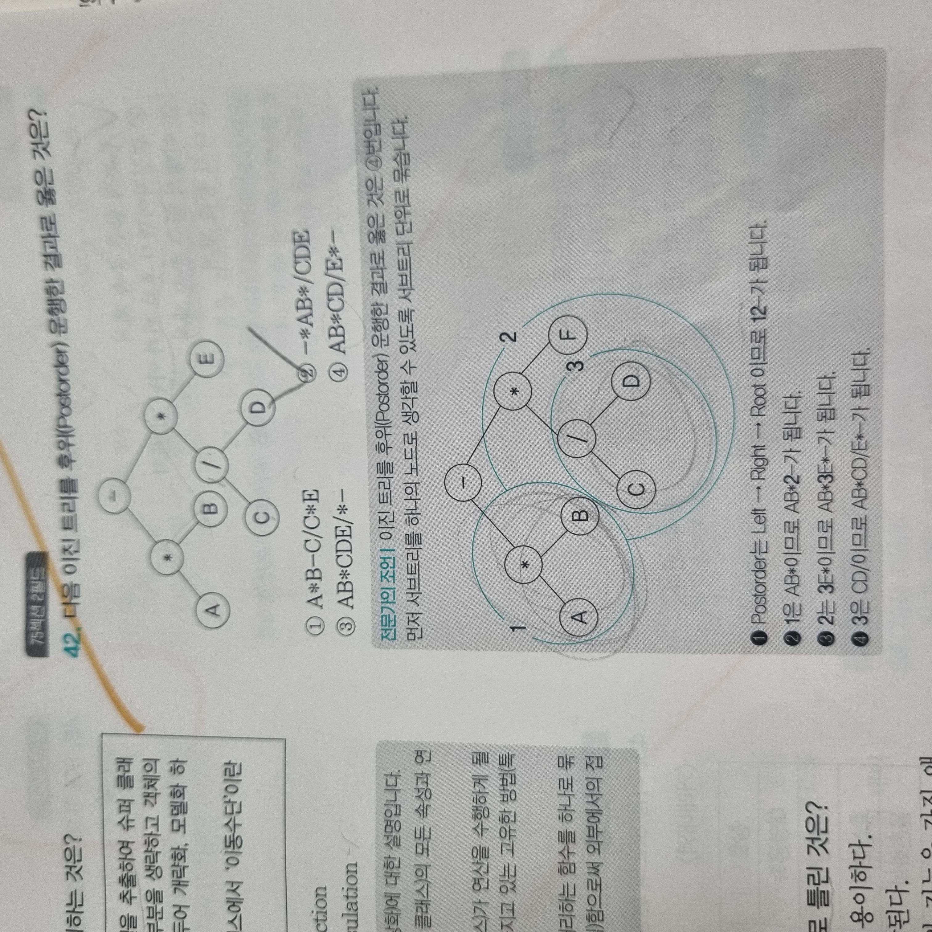 p35에서 42번에 답은 AB*CD/E*-라고 나와있는데 해설에서 그림 그려준거에는 F라고 되있어요 F->E로 고쳐 주셔야 할것같아요