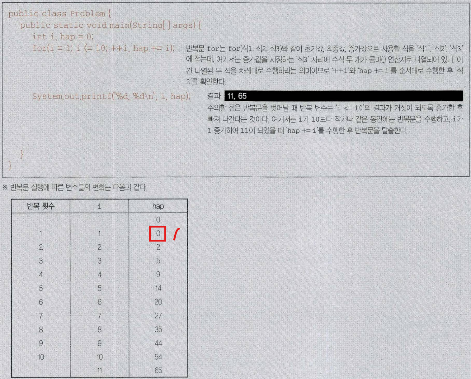 ++i와 hap += i 를 만나 실행이 됩니다