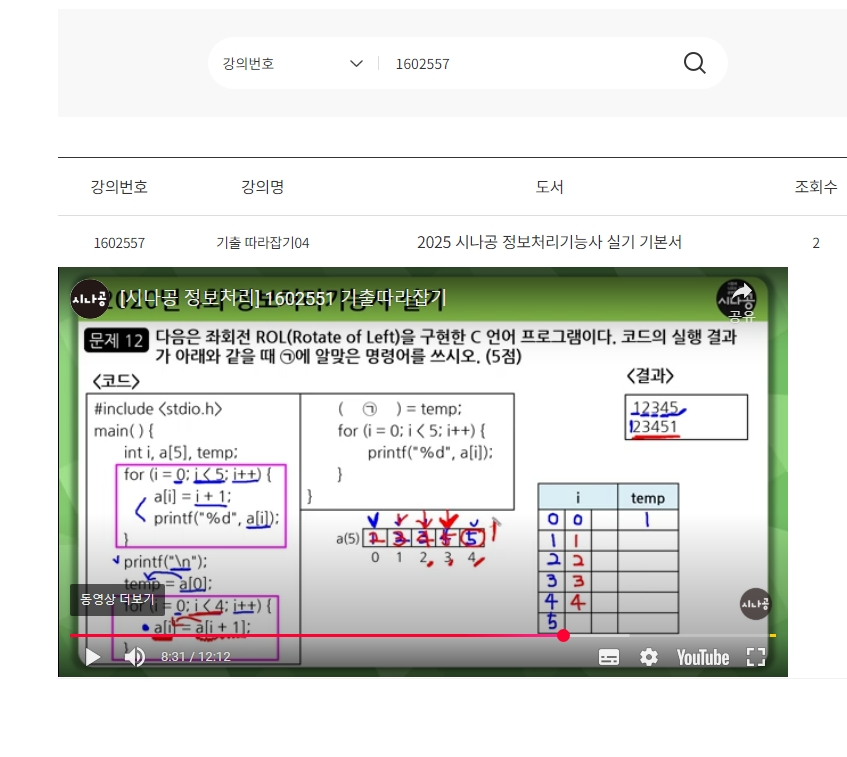 우선 아래 그림처럼 유튜브에서 QR코드를 입력하여 강의를 시청하면 문제와 동일한 강의가 나오고 있으니