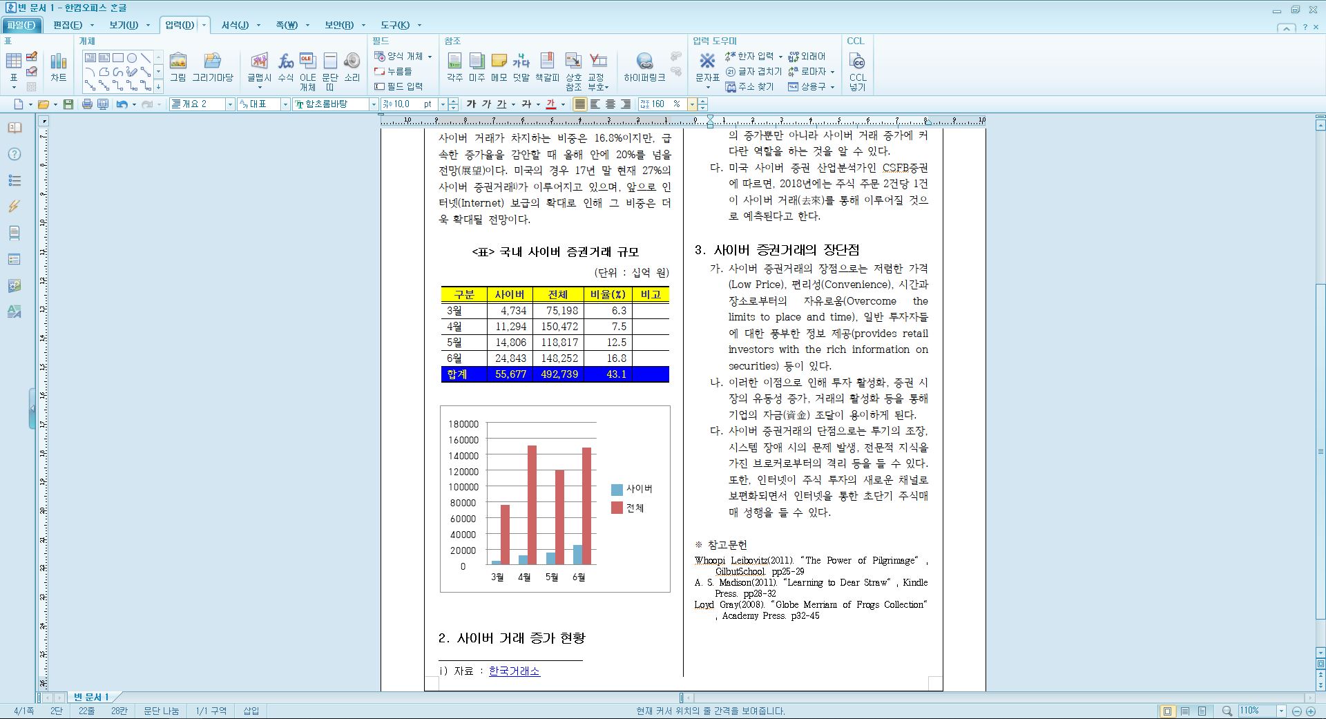 제가 직접 해본 내용엔 "2. 사이버 거래 증가 현황" 한 줄 만 나오더라구요..