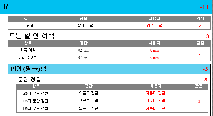 3. 평균이나 합계 행을 포함하여 숫자 길이가 동일하면 가운데, 아니면 가운데 정렬해야 합니다.