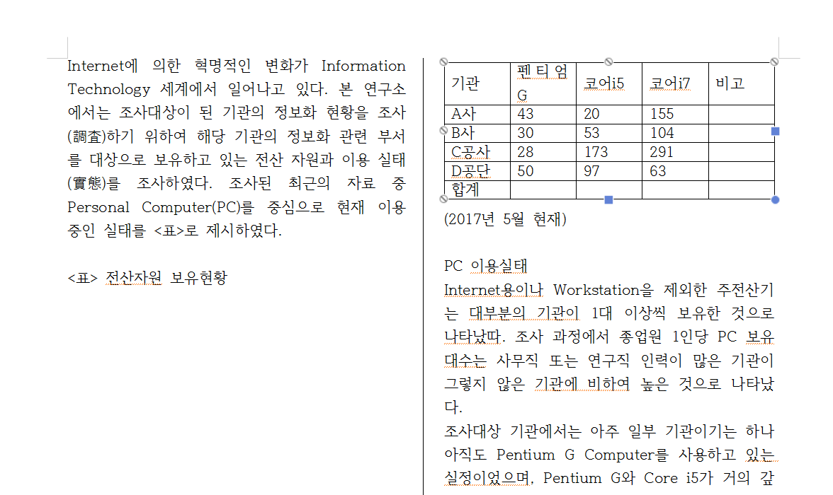 왜계속 표를 작성하고 나서 오른쪽단으로 글이 넘어가서 작성이 되나요?