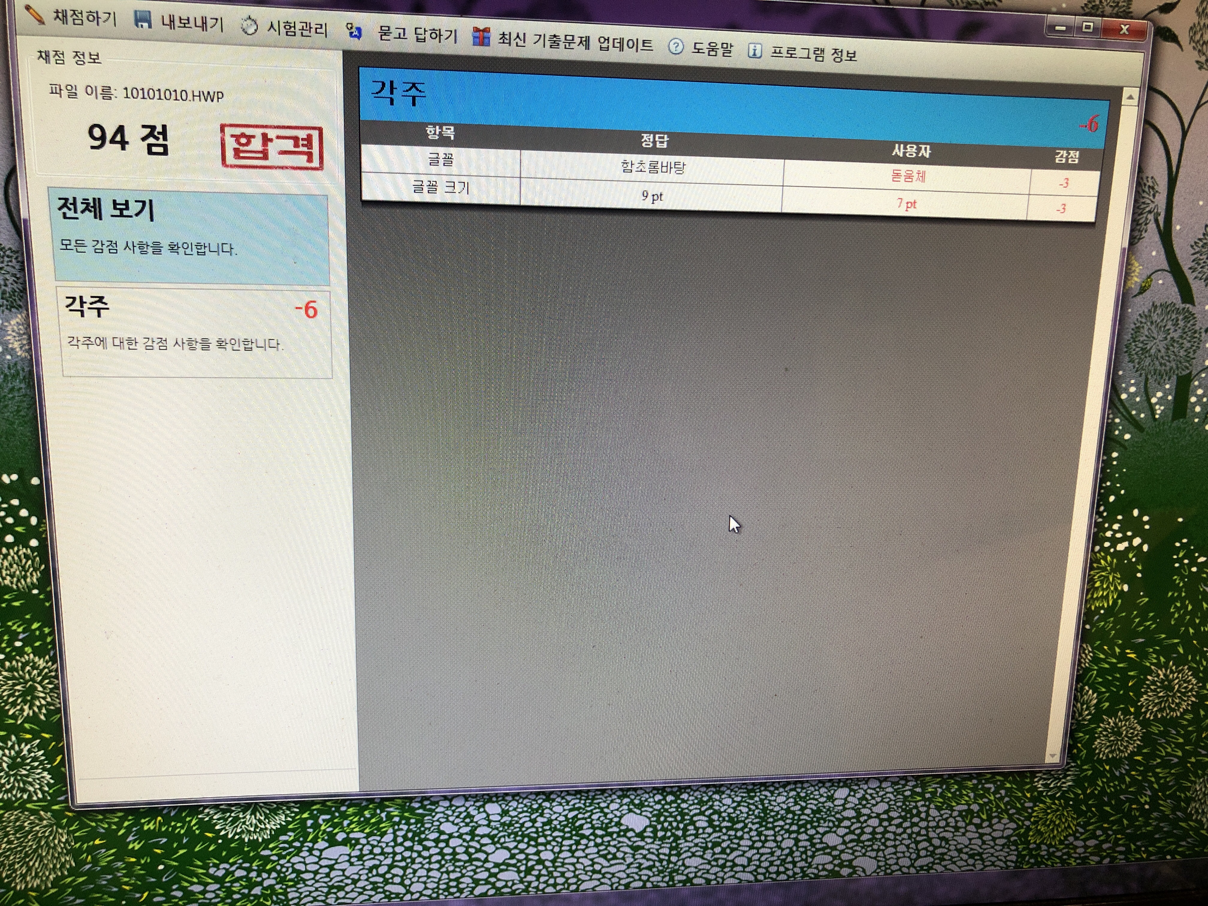 동봉된 cd 안 실기 채점프로그램으로 점수 보는데 이상해네요