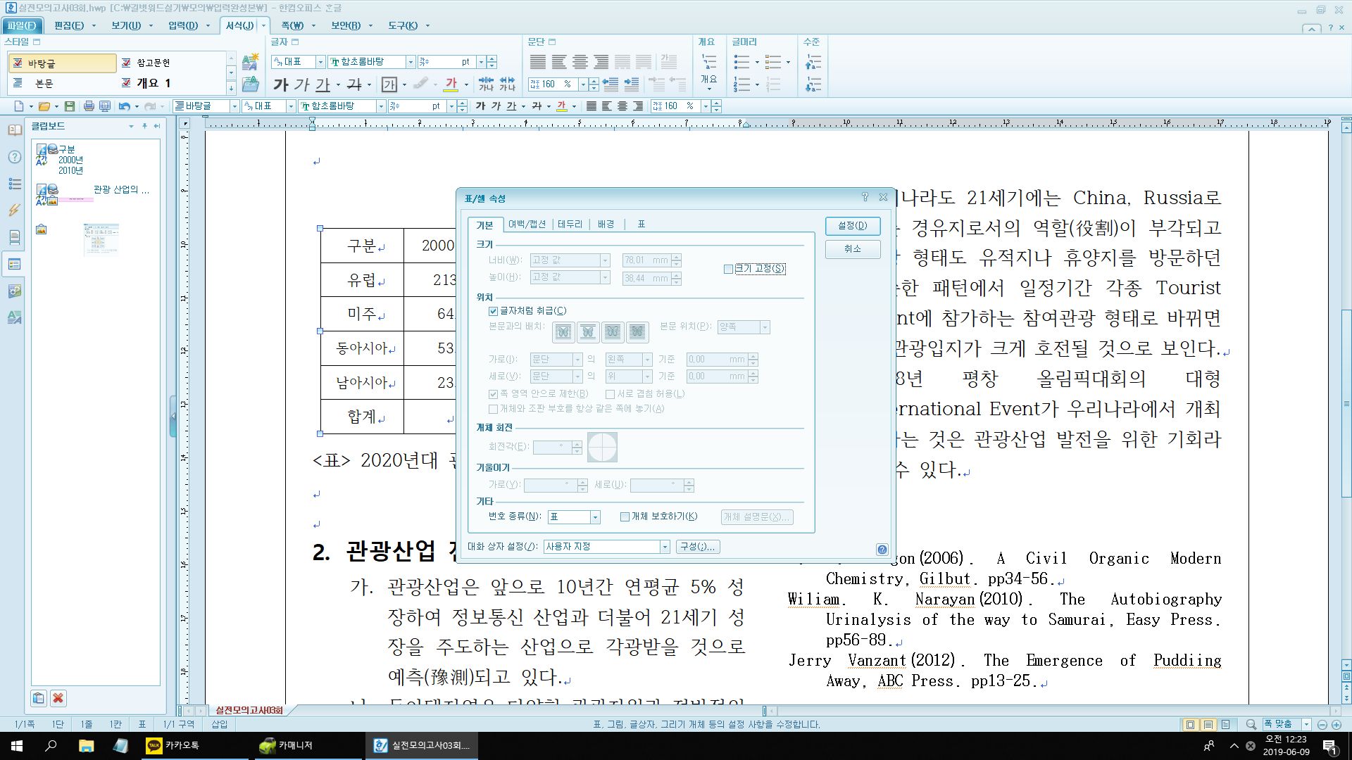 올려주신 그림을 봐도 표를 정확히 볼 수가 없네요. 작성한 한글 파일 자체를 올려주세요.