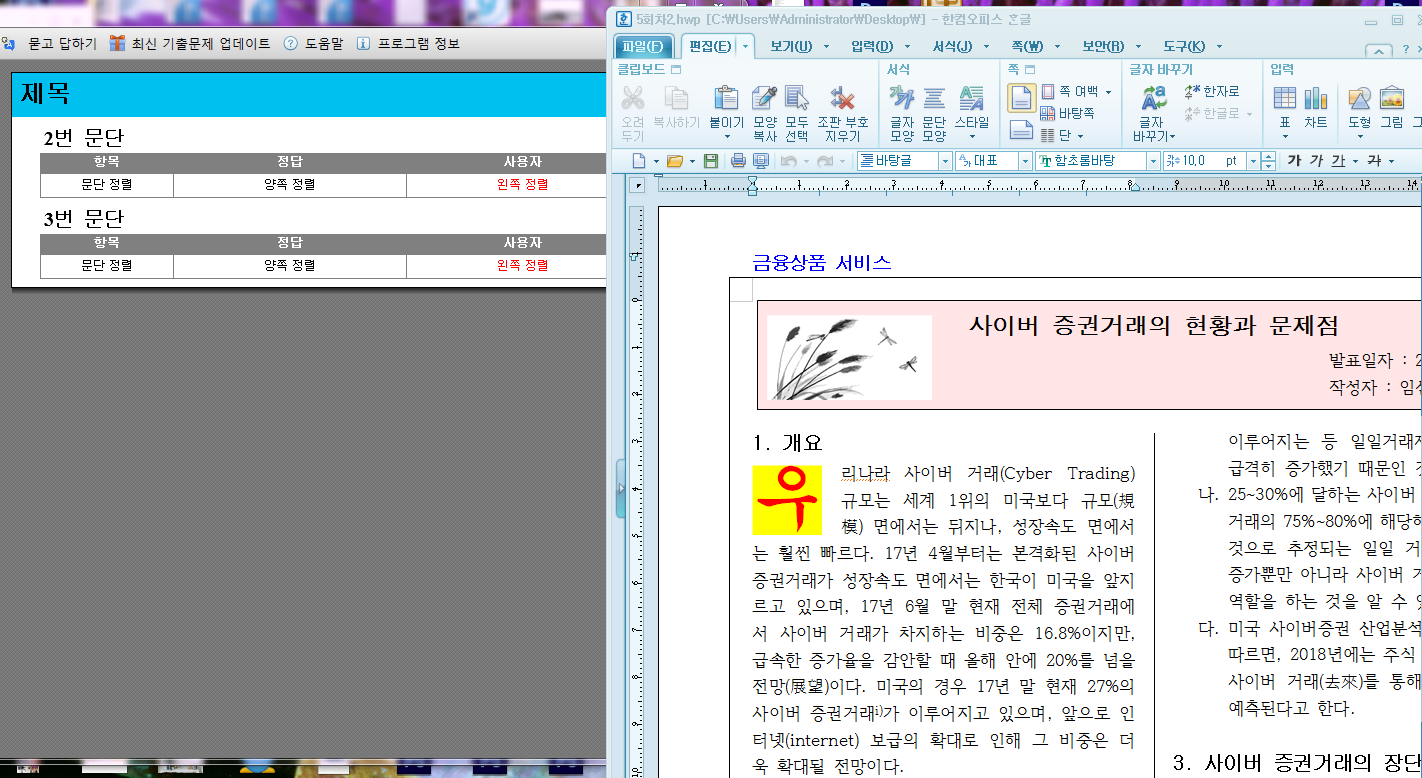 글상자 안의 제목 중 두번째와 세번째 줄의 정렬을 확인해 보세요.