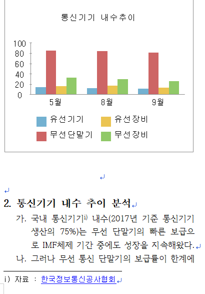 차트를 선택한 후 [Ctrl]+[X]를 눌러 잘라내기하면 아래 그림처럼 표와 표 아래 문단이 붙어 있을 것입니다.