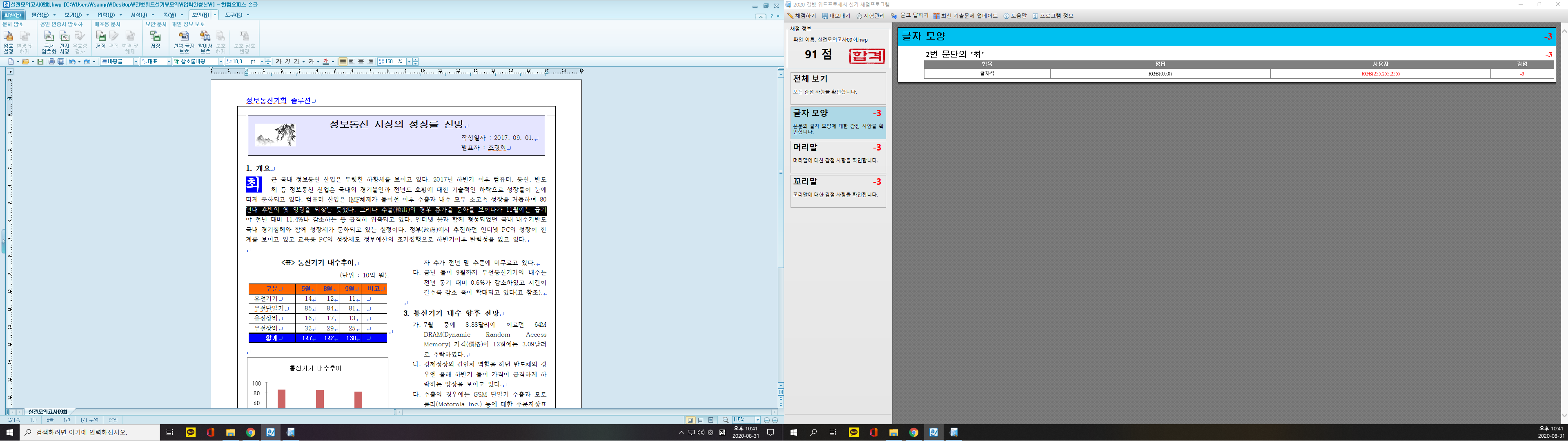 첫글자 장식 "최"의 '조판 부호'에 해당하는 색이 정답과 달라 발생한 문제로, 실제 시험에서는 조판 부호의 서식은 점수에 영향을 주지 않습니다.