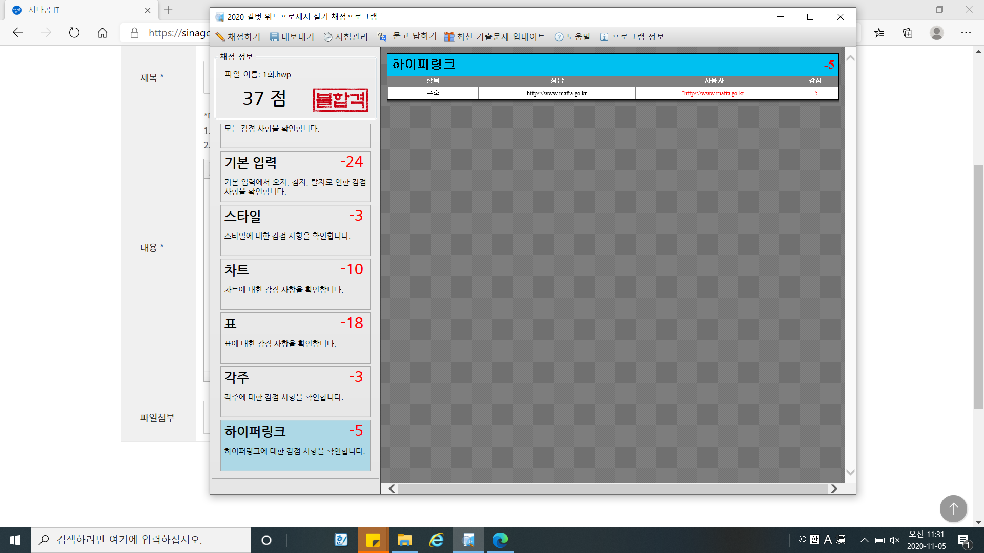 2020 시나공 워드프로세서 실기 (컴활함수사전 + 채점기준표)
