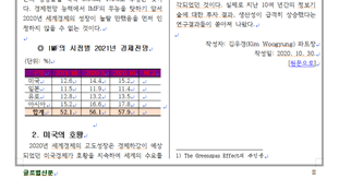 왼쪽 단락 마지막에 2020년 세계경제의- 이 문단이 오른쪽으로 넘어가야하는데