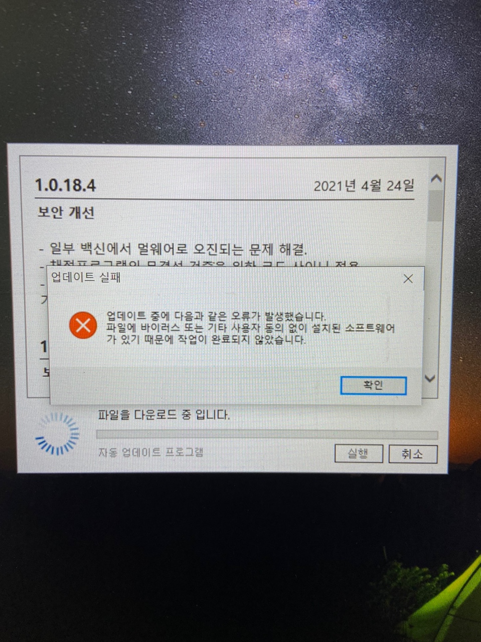 최근 강화된 방화벽이나 특정한 백신 프로그램 업그레이드로 인해