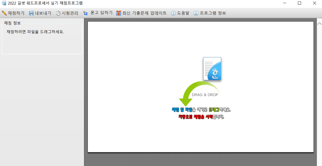 채점에 사용하실 작업파일을 프로그램으로 드래그하거나,
