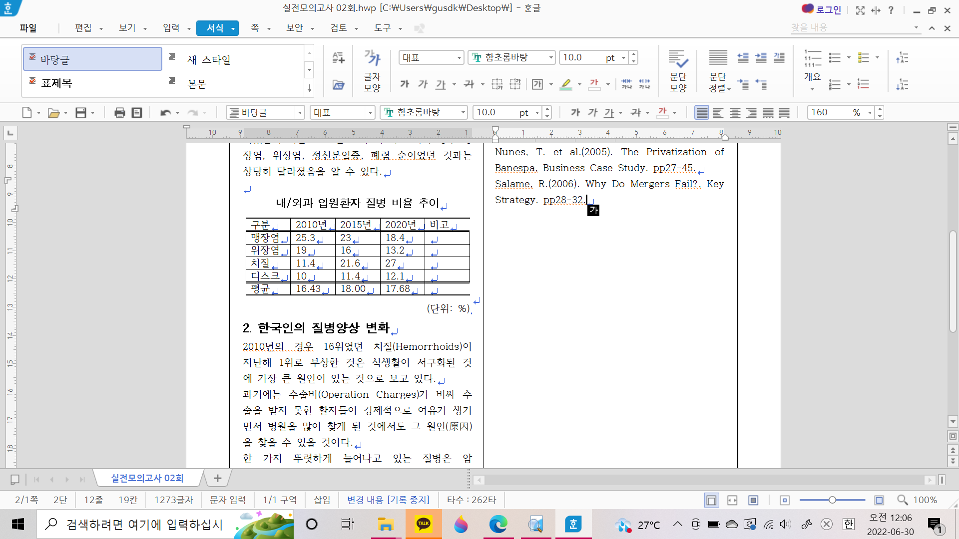 첨부한 파일에서 왼쪽 표의 테두리가 변경이 안되네요.