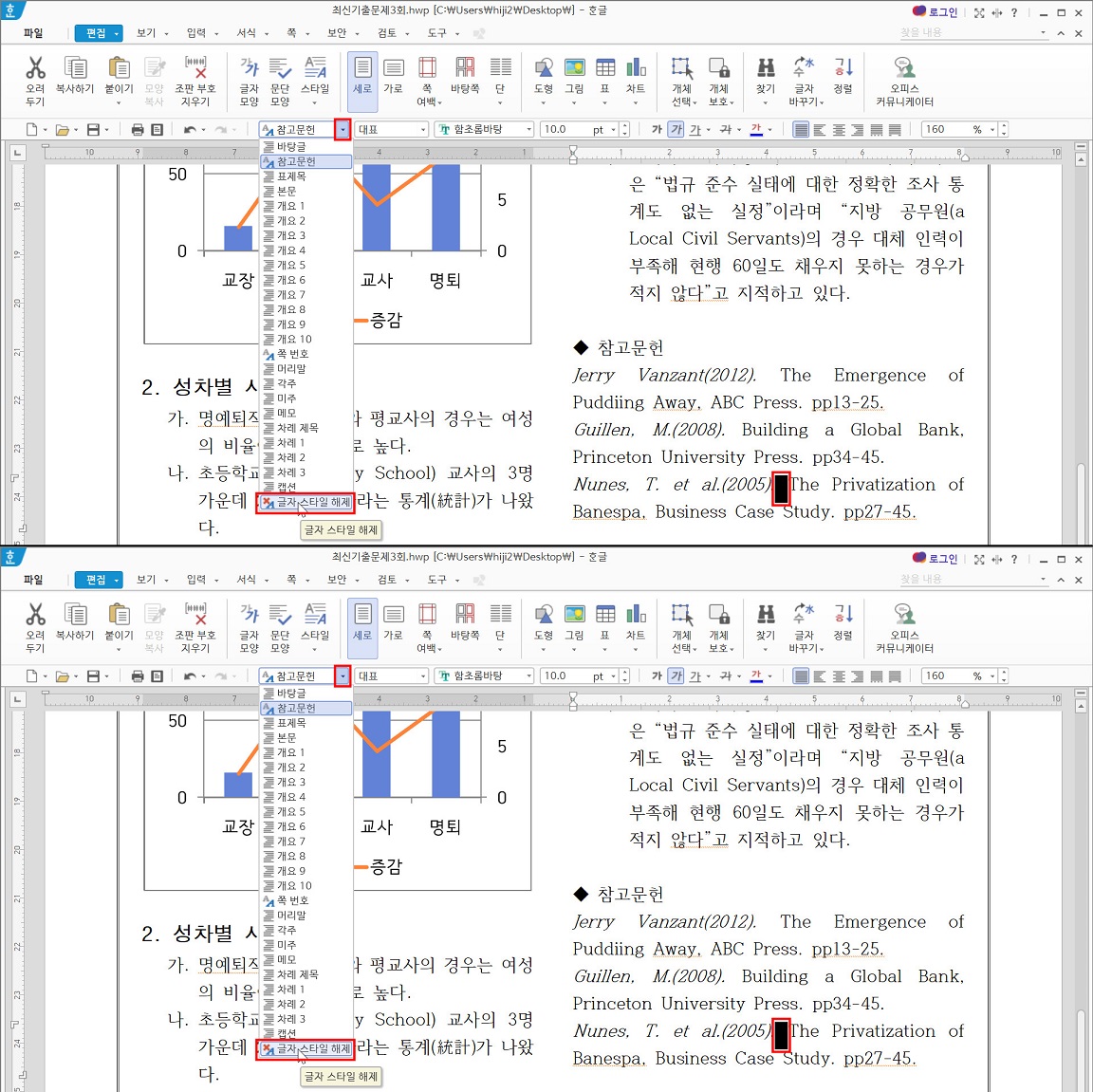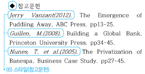 참고문헌 스타일은 다음과 같이 지정해야 합니다.