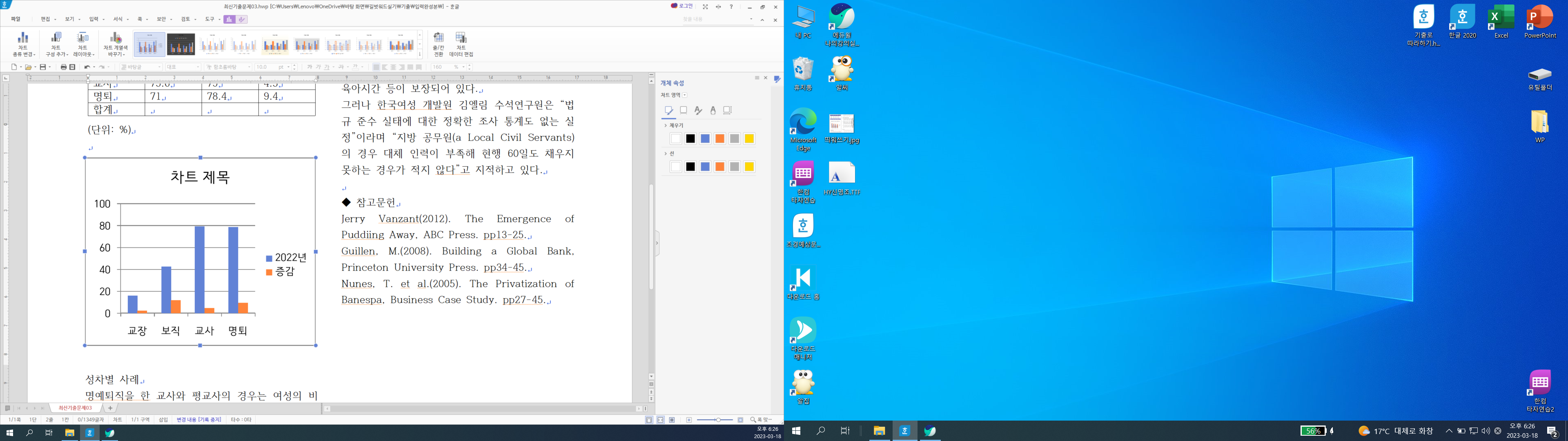 워드프로세서 실기 에서 차트 안에 이름변경시