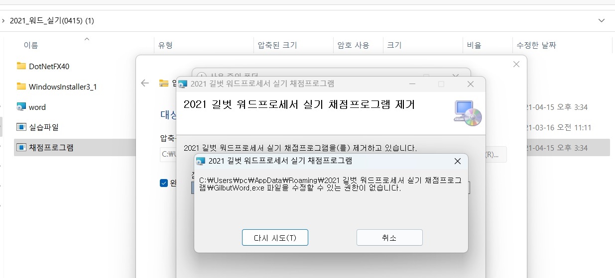 안녕하세요. 채점프로그램 설치가 불가하고 오류가 발생되어 문의드립니다.