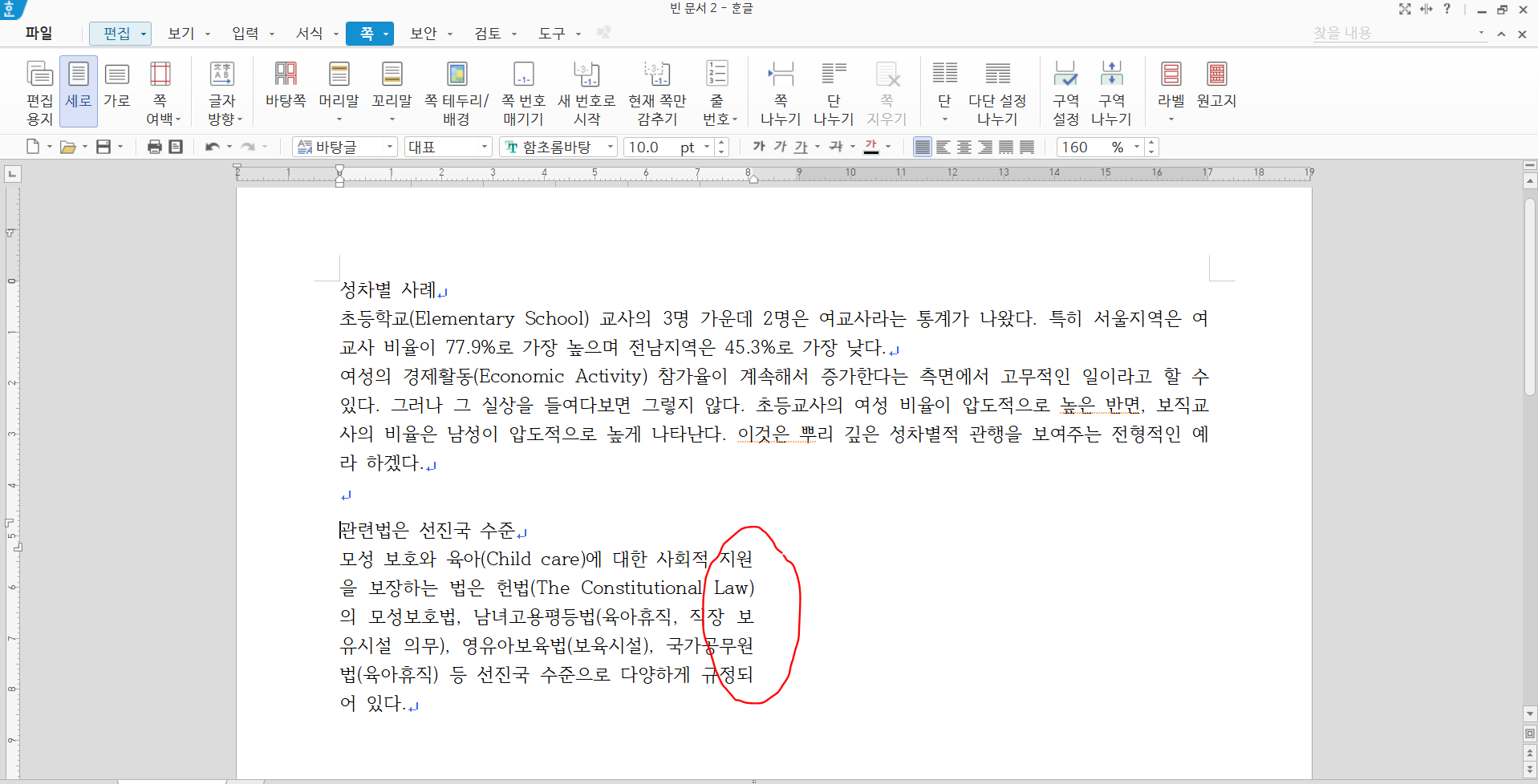 연습문제 참고해서 여백설정도 똑같고 단설정도 똑같이 했습니다.
