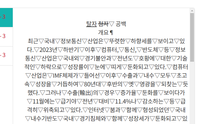 회원님께서 말씀하신 맨위에 있는 탈자 첨자▽ 공백 은 회원님께서 틀렸다는것이 아니라