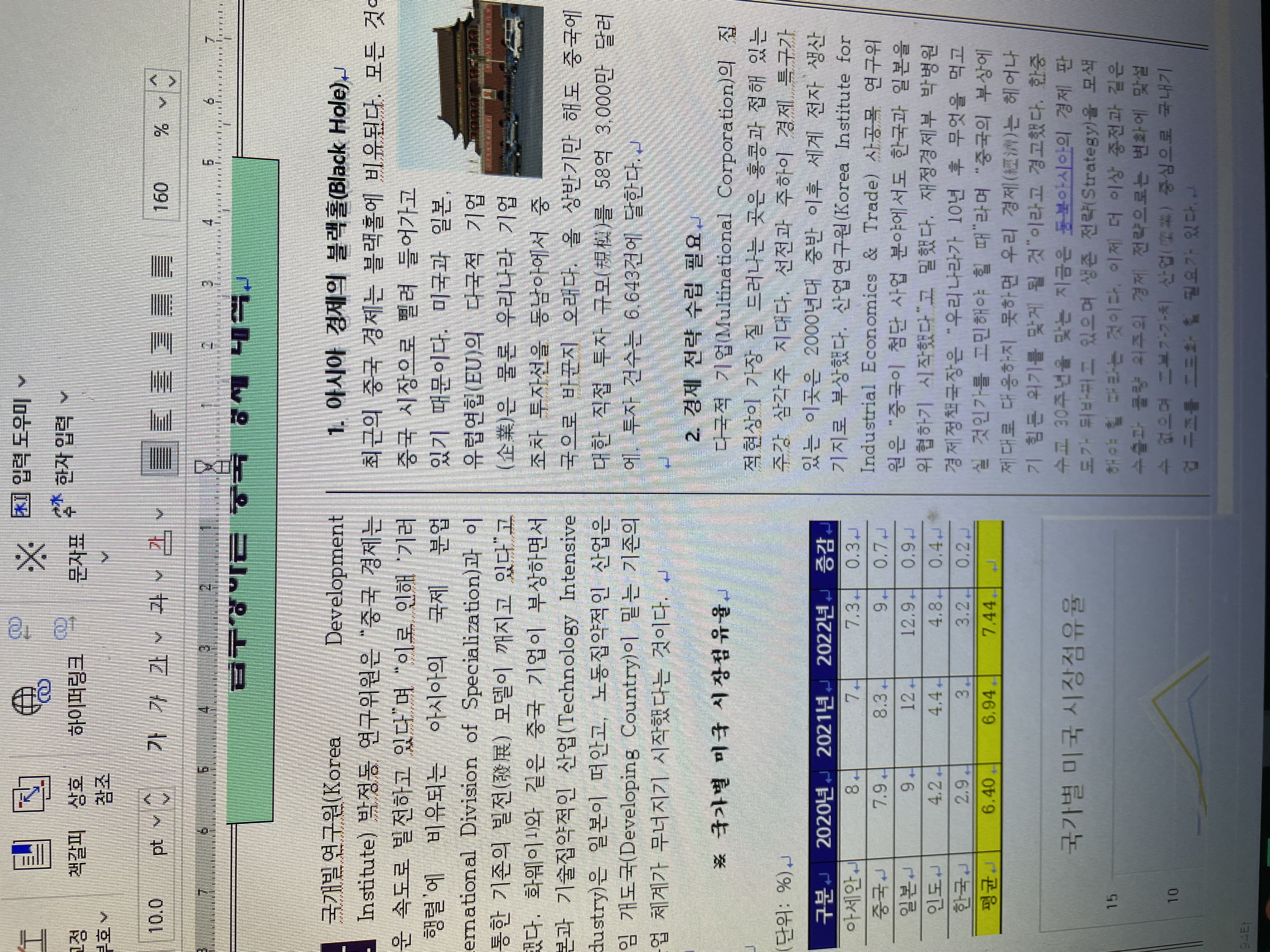 원래는 차트 바로 밑에 1. 아시ටㅏ 경제블랙홀/ 최군의 중국 경제는 블랙홀에 비유된다. 모든 것₩ 이게 들어가야 하는데 넘어가면 감점인가요