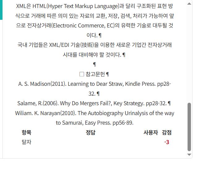 띄어쓰기를 잘못하여 감점이 된것입니다