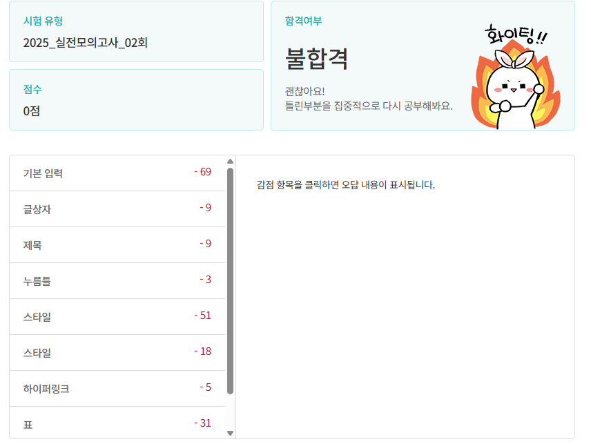 회원님께서 첨부하신 그림파일을 보면 "기본입력"부분에서 상당히 많은 점수가 감점되었습니다.