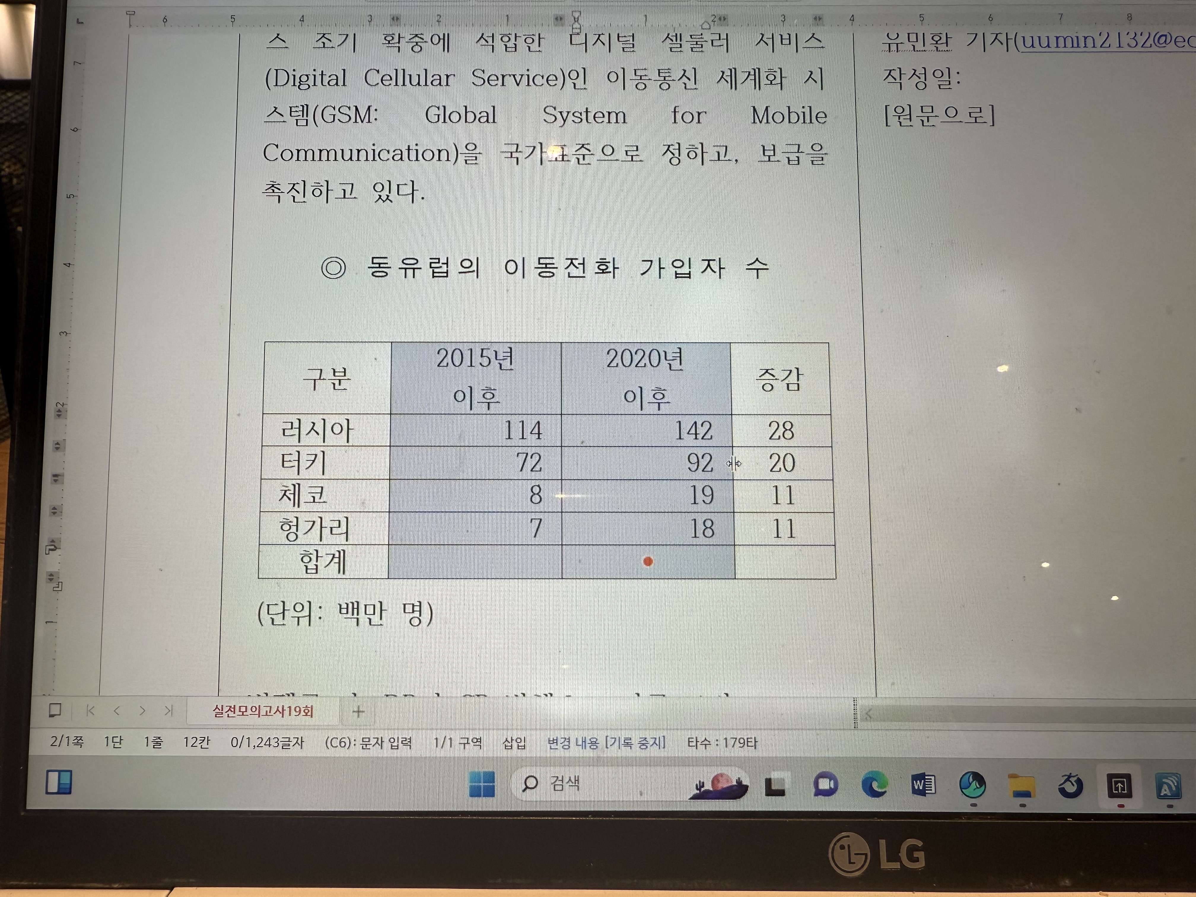 동영상 강의에서 나오는 것처럼, 표 여백 설정하고, 구분 과 증감 선을 조정(최대한 조정)을 하고, 표 넓이 같게를 했는데, 사진에 보이는 것과 같이," 2015년 이후, 2020년 이후" 두개의 셀이 한줄이 아닌 두줄로 설정이 됩니다, 이러한 경우에 어떻게 해야 하나요?
