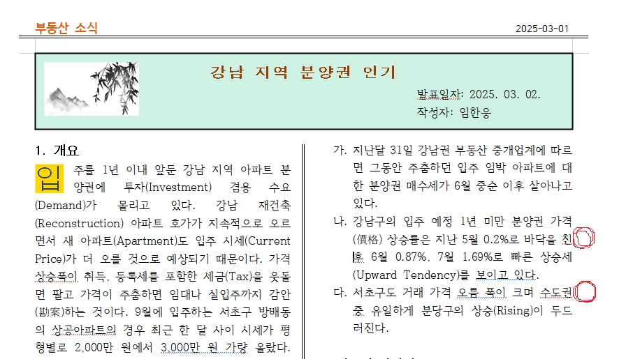 또는 문서 내 같은 단어가 있는지 확인한 후 그에 맞게 적용하면 됩니다.