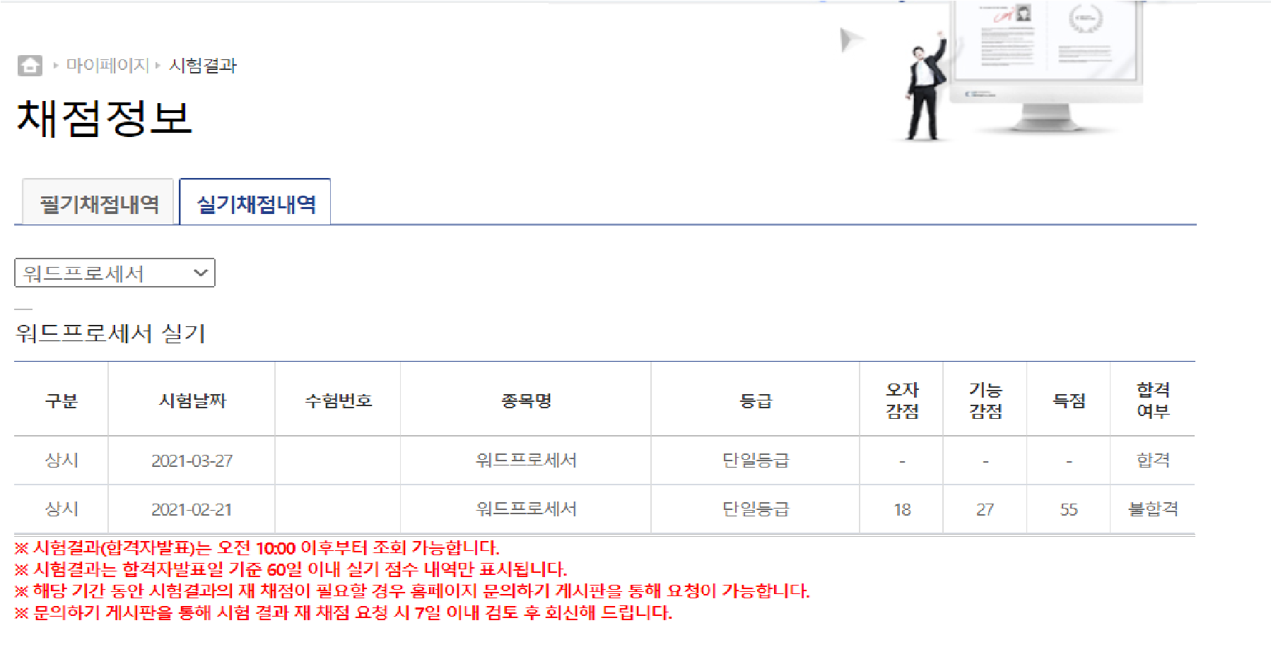 작년에 워드프로세서에 도전해서 필기를 합격한 후 다른 교재를 구입해서 한달간 연습한 후 올해 2월에 실기에 도전하였는데 너무나 황당하였습니다.