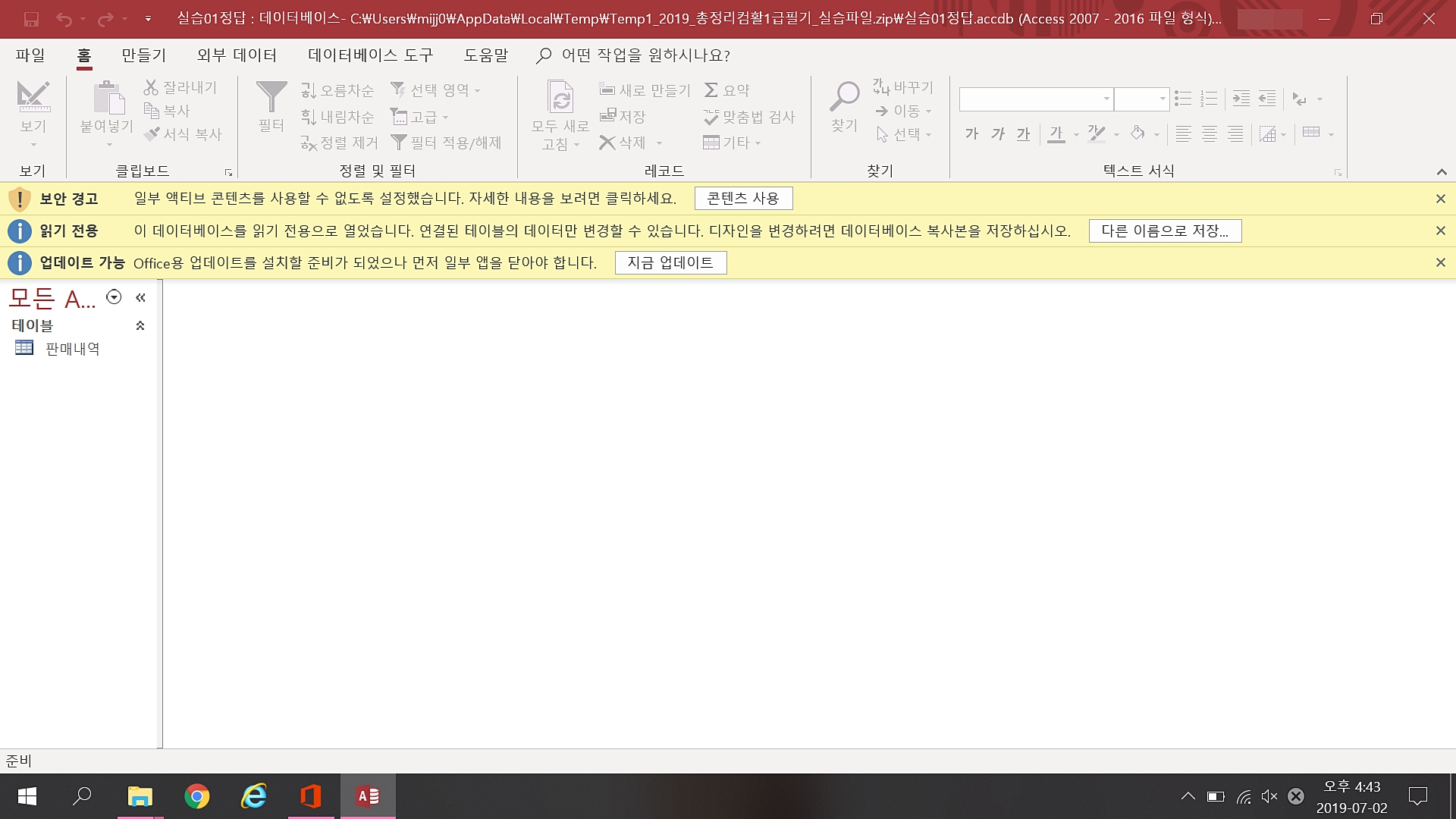 참고로 실습01문제.accdb 파일은 아무 내용이 없습니다.