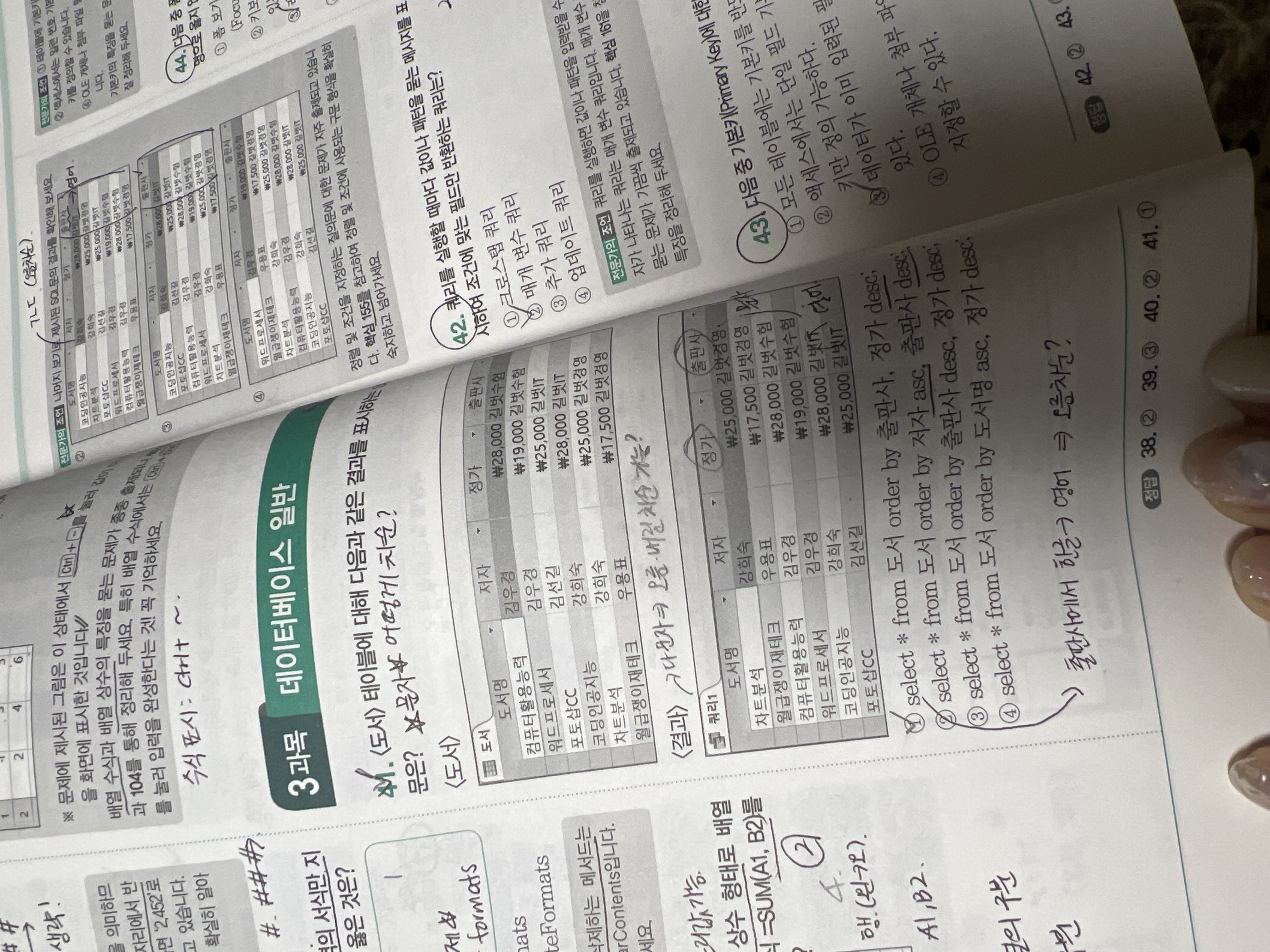 정렬 부분이 이해가 되질 않습니다. 텍스트의 경우 오름차순이면 가나다 순서라고 들었는데 그럼 보기 1번에서 출판사와 정가부분이 내림차이면 그냥 거꾸로 돼야 하는 것이 아닌가요? 뒤죽박죽이면 다 내림차순인건가요? 정가 부분에서 값이 점점 커지는 것이 아니라 큰 값 작은 값 다 섞여있는데 이런 것도 내림 차순인가요? 그리고 출판사 부분에서도 내림 차순이라고 했는데 보기에서는 근데 문자가 먼저 나타나고 영어 대문자로 쓰여져 있는 레코드가 가장 마지막에 있는데 이런 경우는 오름차순이 아닌가요?