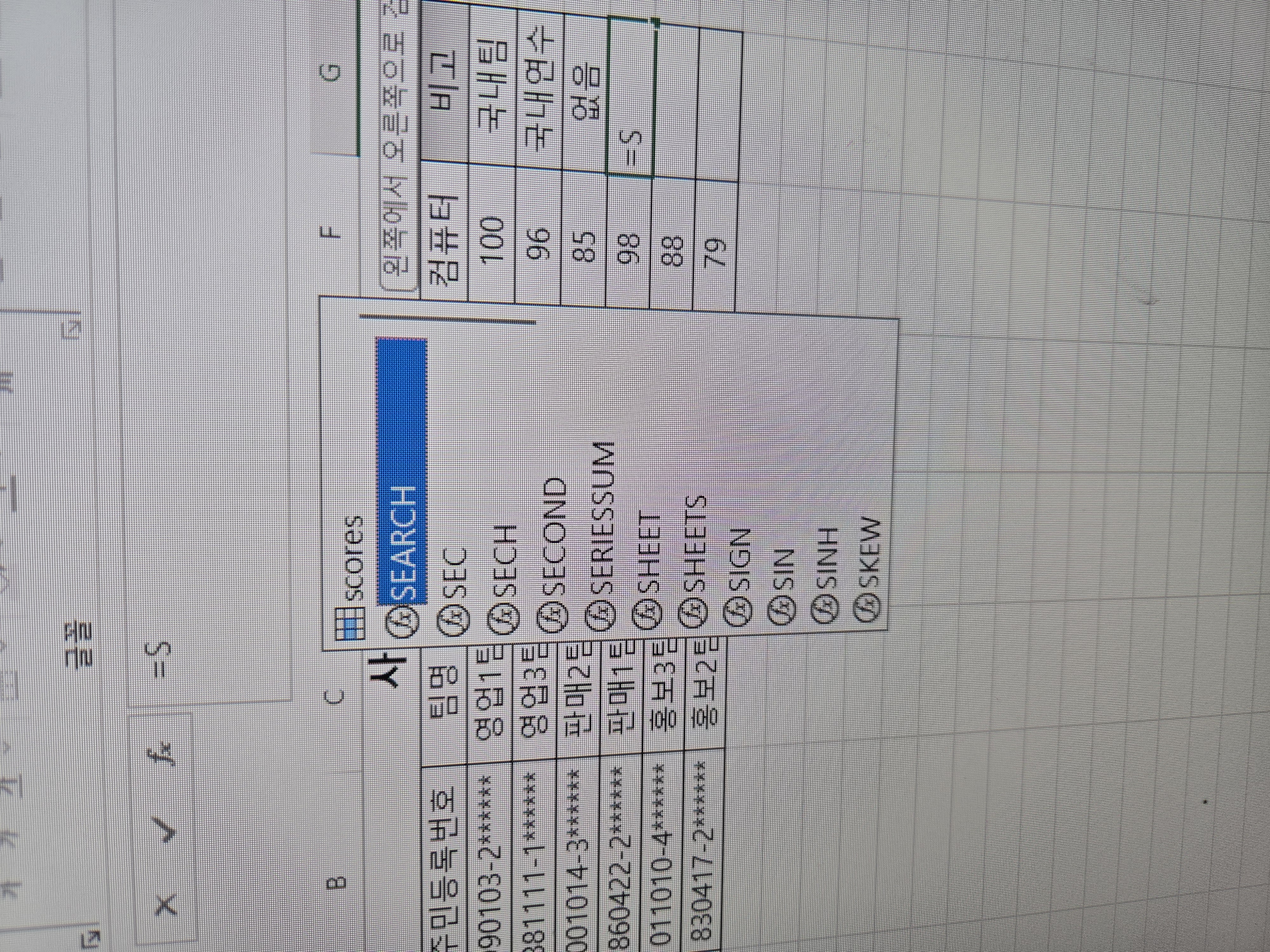 실습 파일 다운 받아서 열고 공부 하고있는데 실습 5번문제 에서 IFS,SWITCH 라는 함수가 엑셀에서는 안나오는데 어떻게 해야하나요??ㅠㅠ
