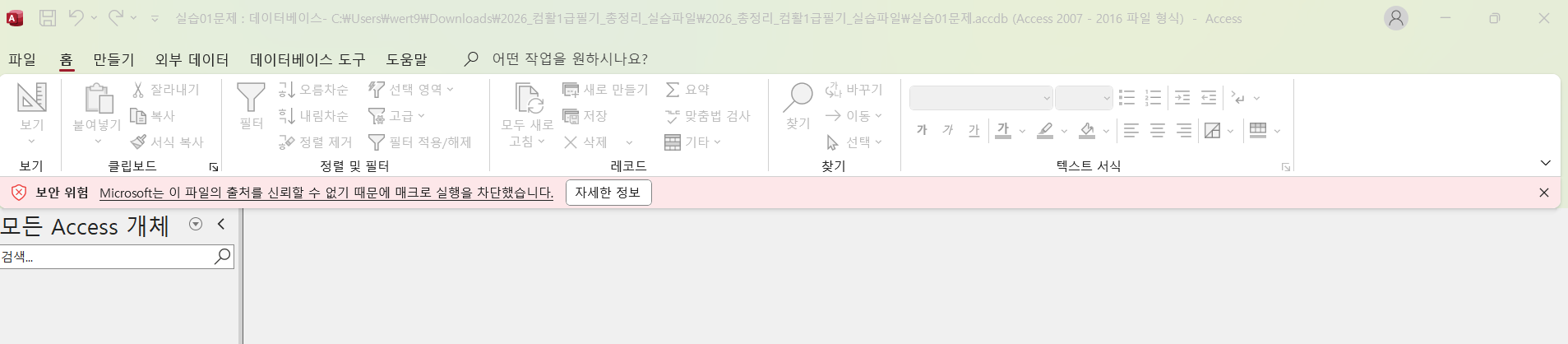 마이크로소프트는 이 파일의 출처를 신뢰할 수 없기 때문에 매크로 실행을 차단했습니다.