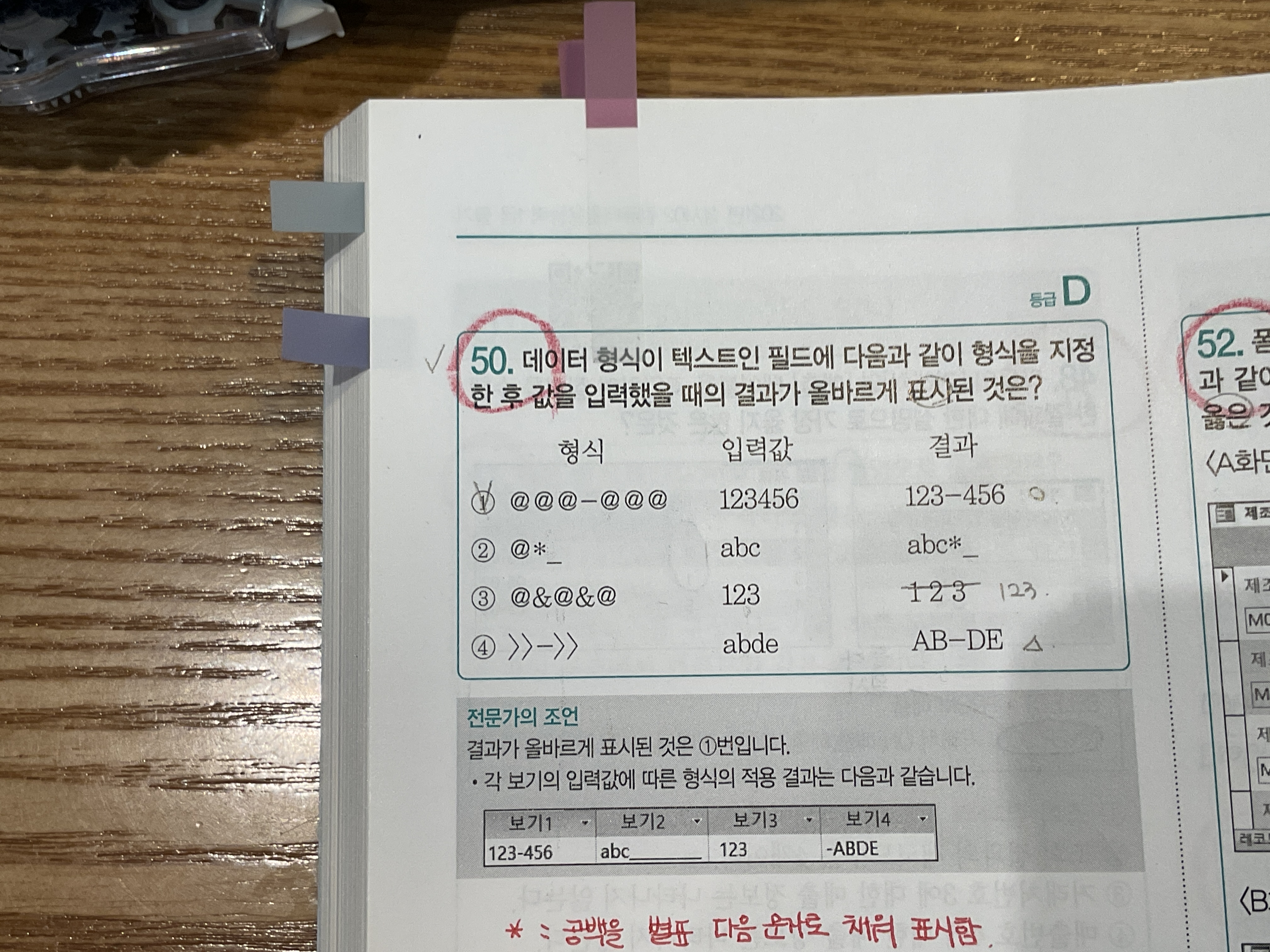 1) 기본서에서 @는 텍스트 한 자리를 나타내며 텍스트를 표시할 자릿수를 지정한다고 했습니다.