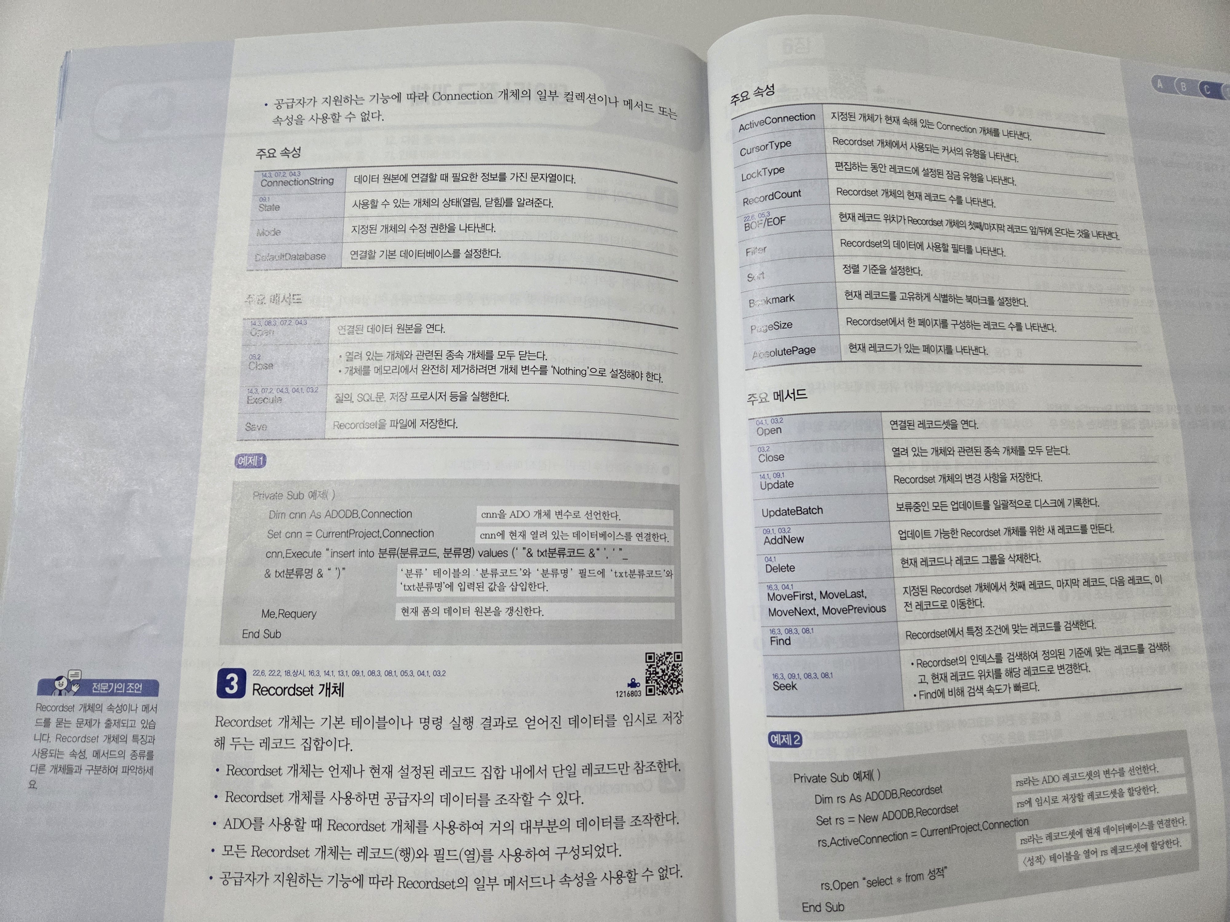 Save가 Connection개체라고 나왔는데 실상은 Save는 Recordset개체입니다. 즉 508페이지의 Save를 509페이지로 옮겨야 할 거 같습니다.