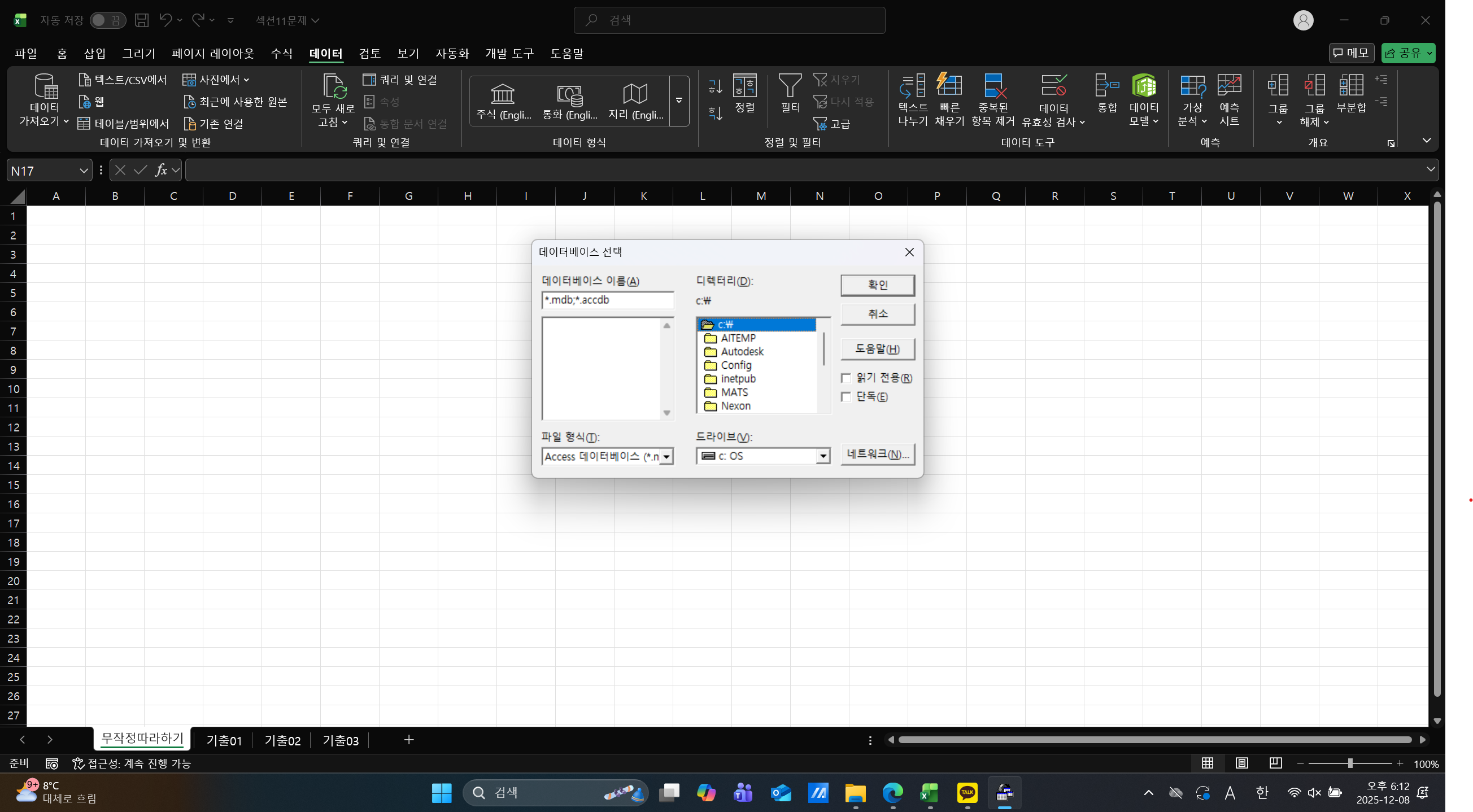 155P 피벗 테이블 데이터베이스 선택창에서 깃벗컴활1급이라는 파일이 없는데 어떻게 해야하나요???