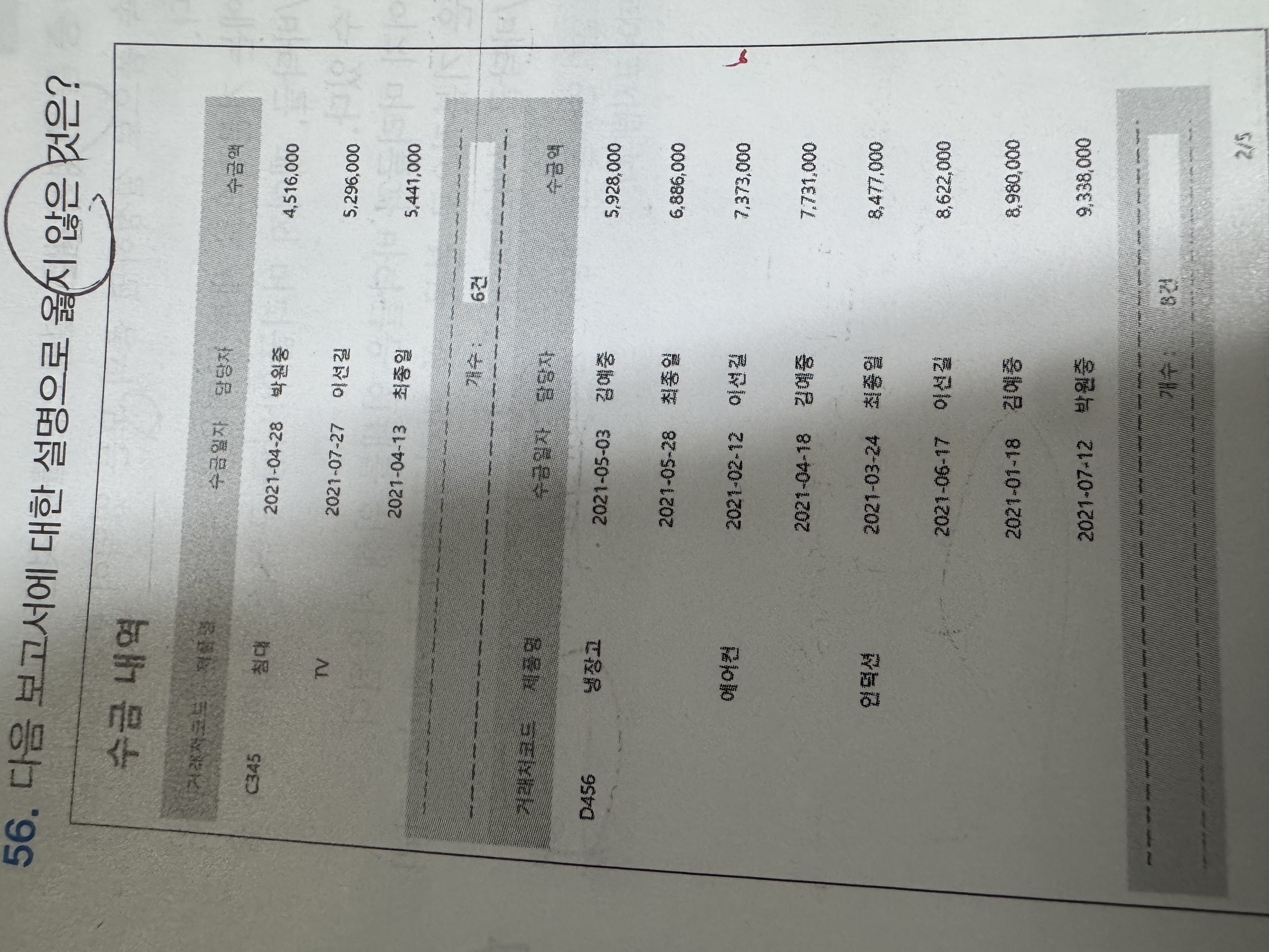 2025년 3회 56번 문제 질문입니다. (43p)
