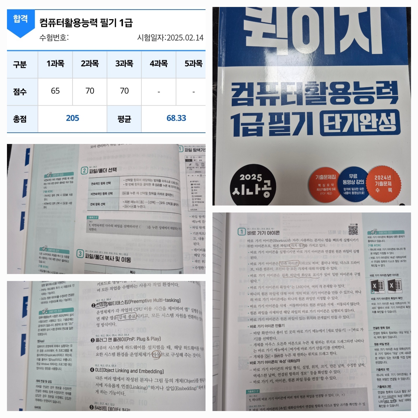 *단점으로는 딱히 없지만 그래도 뽑는다면, 개념 책에 비해 단기완성이다 보니 안 들어간 기본 개념들이 몇 개 있습니다. 예를 들어 하드디스크 직렬방식인 SATA, PATA 구분이라거나 이러한 점은 안 들어가있긴 합니다. 책에서 보지 못 했던 개념이 시험을 보는 도중에 나와 약간 어색하긴 했던 기억이 있습니다.